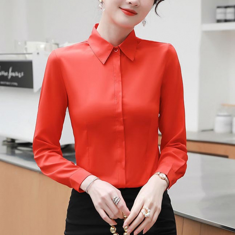 봄과 가을 새로운 검은 흰색 셔츠 여성의 한국식 슬림 긴팔 작업복 셔츠 작업복 비즈니스 원피스 탑
