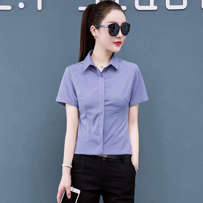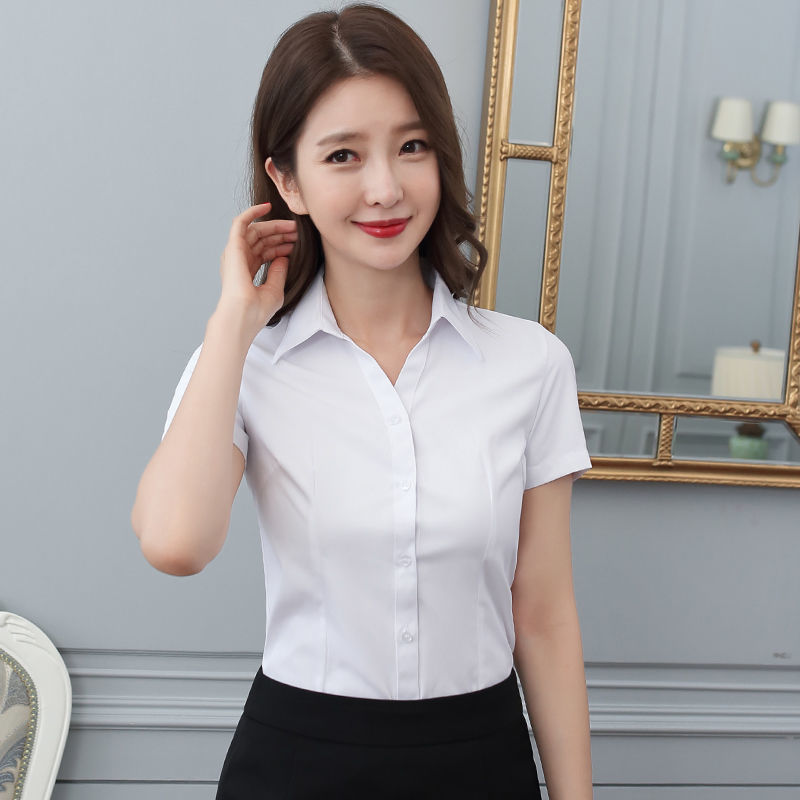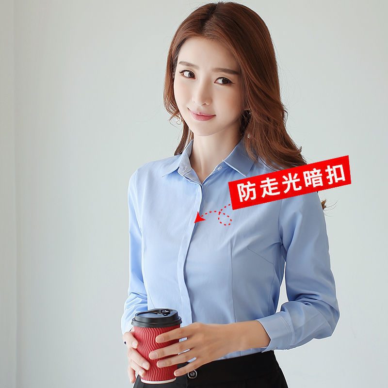 봄과 가을 새로운 검은 흰색 셔츠 여성의 한국식 슬림 긴팔 작업복 셔츠 작업복 비즈니스 원피스 탑스토어 가기