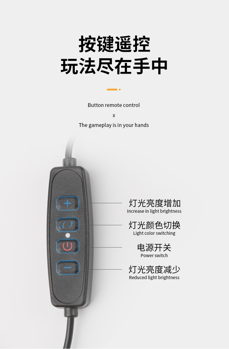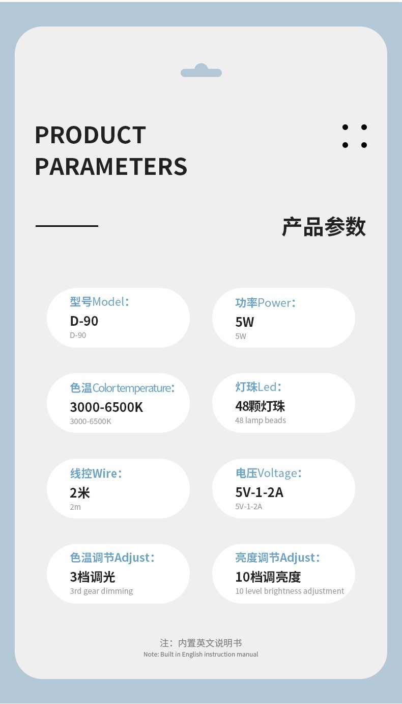产品光源:三色切换(暖光,暖白光,白光), 10种亮度调节