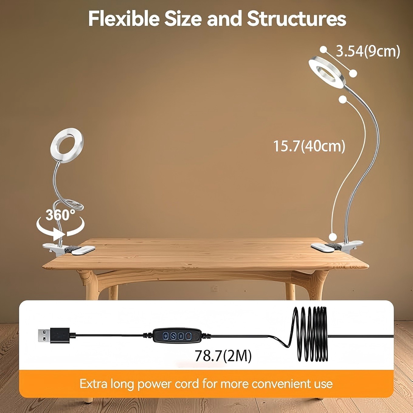 产品尺寸:灯头直径9CM(3.5寸),管长:40CM,线长2M