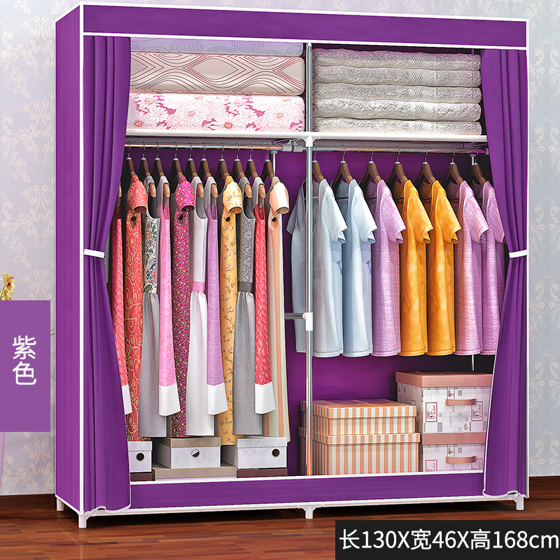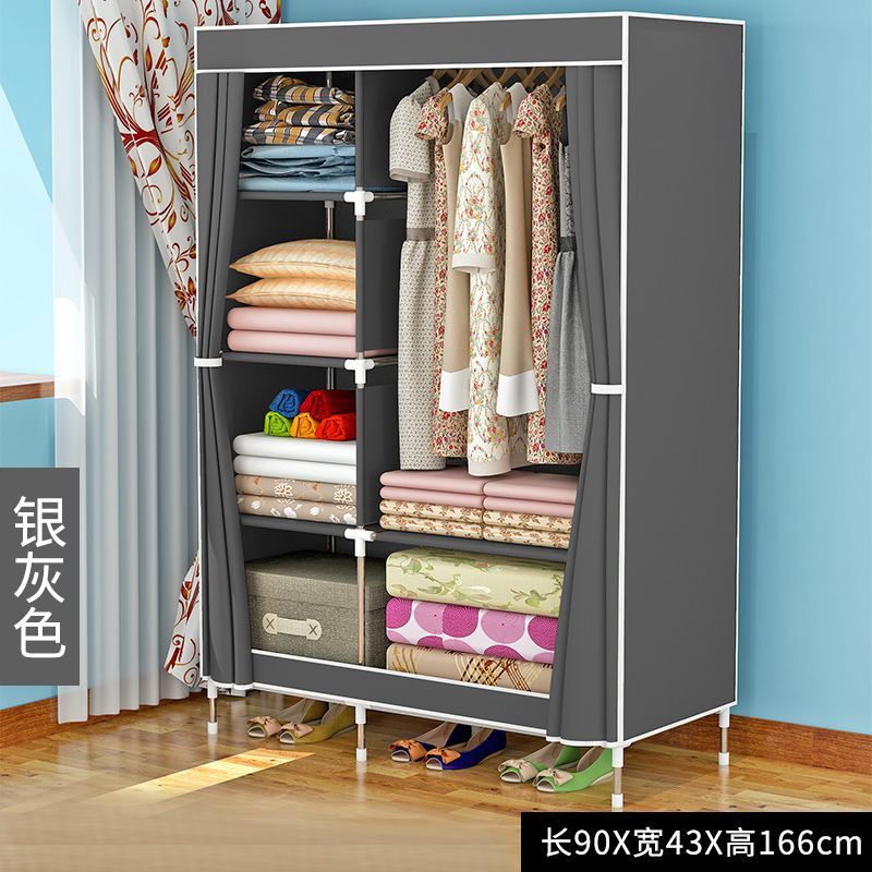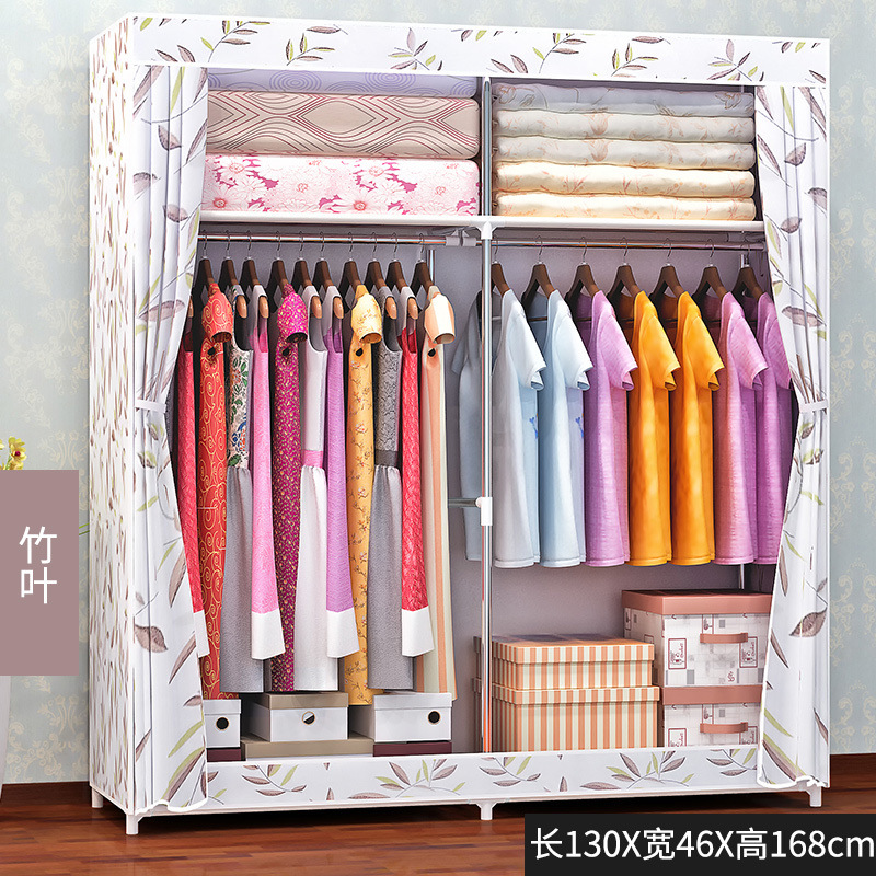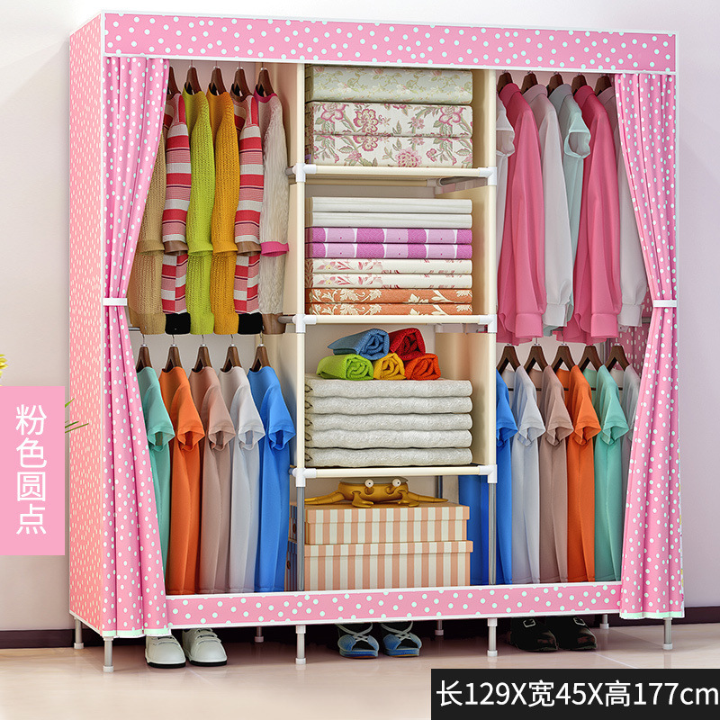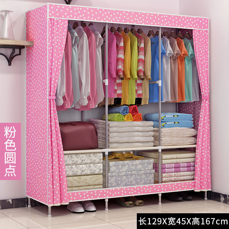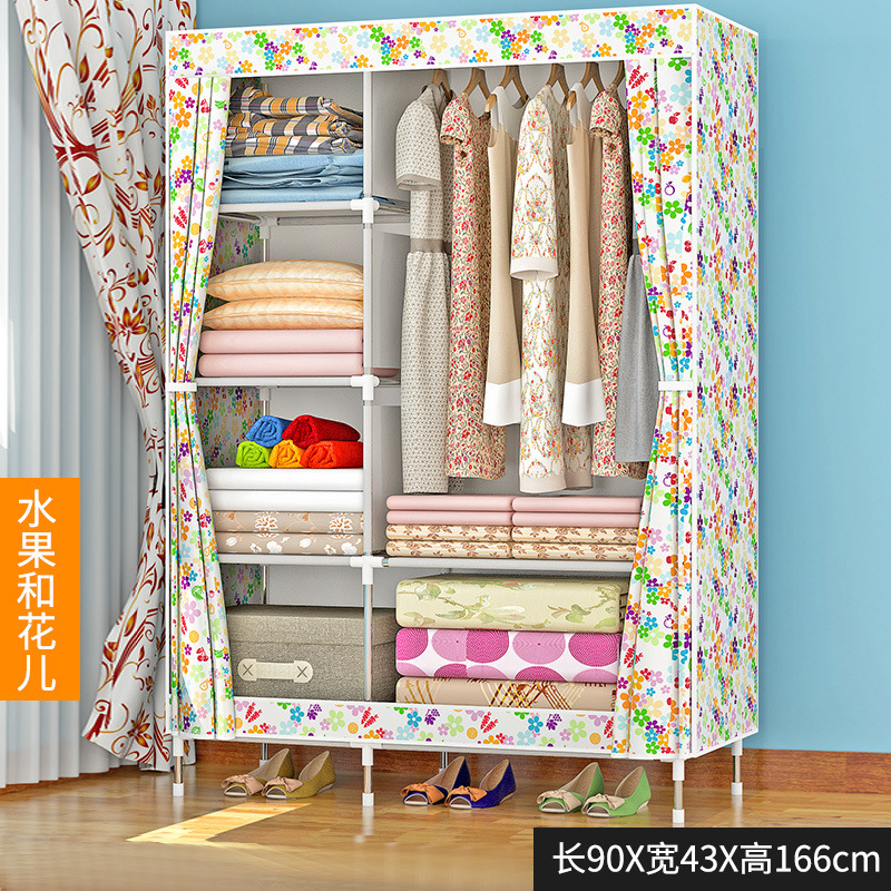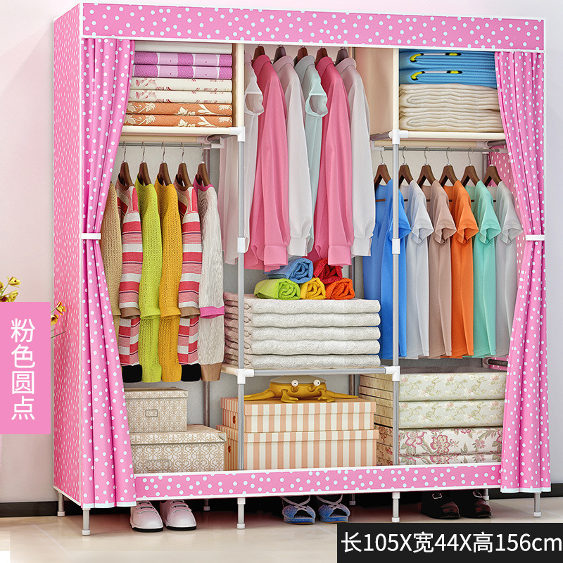 간단한 옷장 강철 파이프 두꺼운 두꺼운 천 옷장 임대 주택 주택 침실 조립 옷장 폐쇄 공장 도매스토어 가기