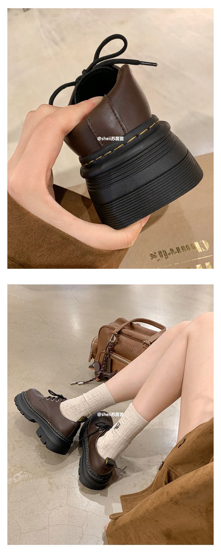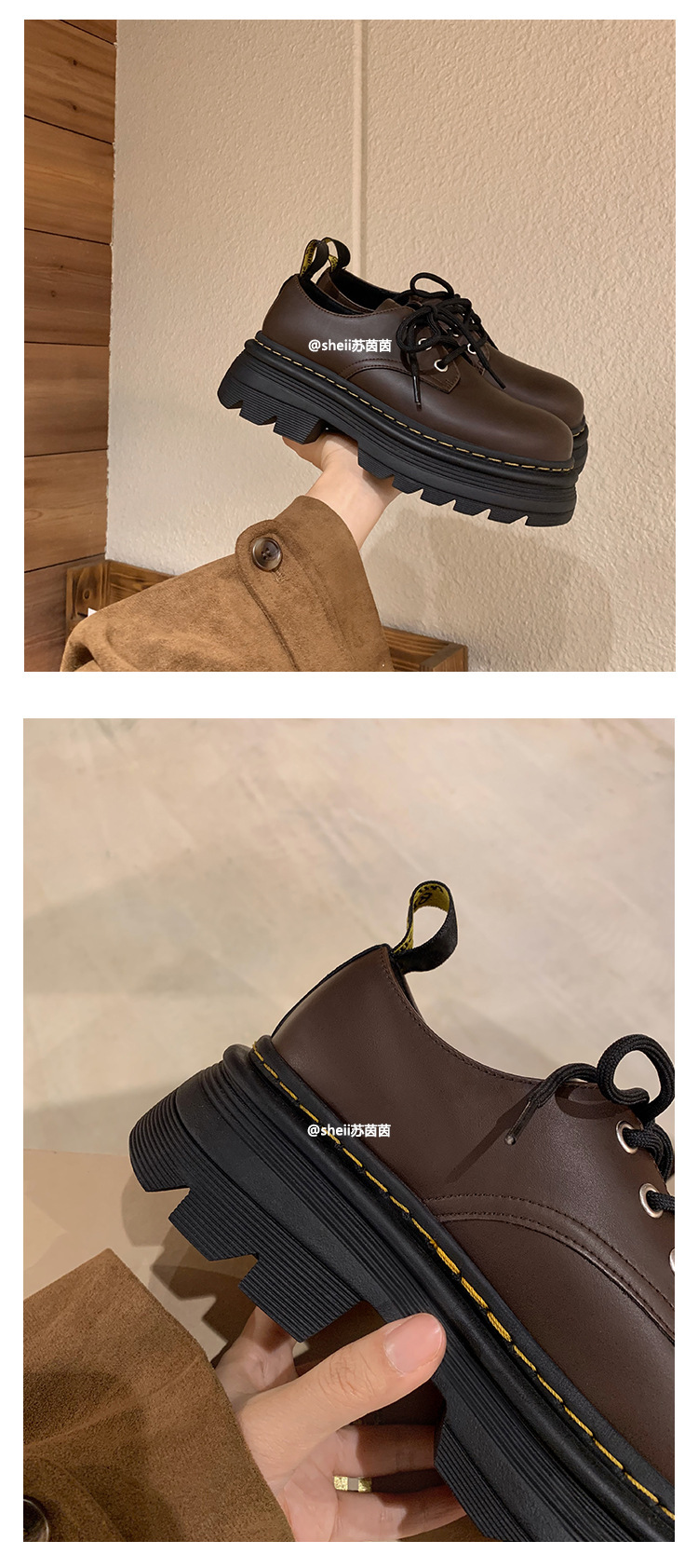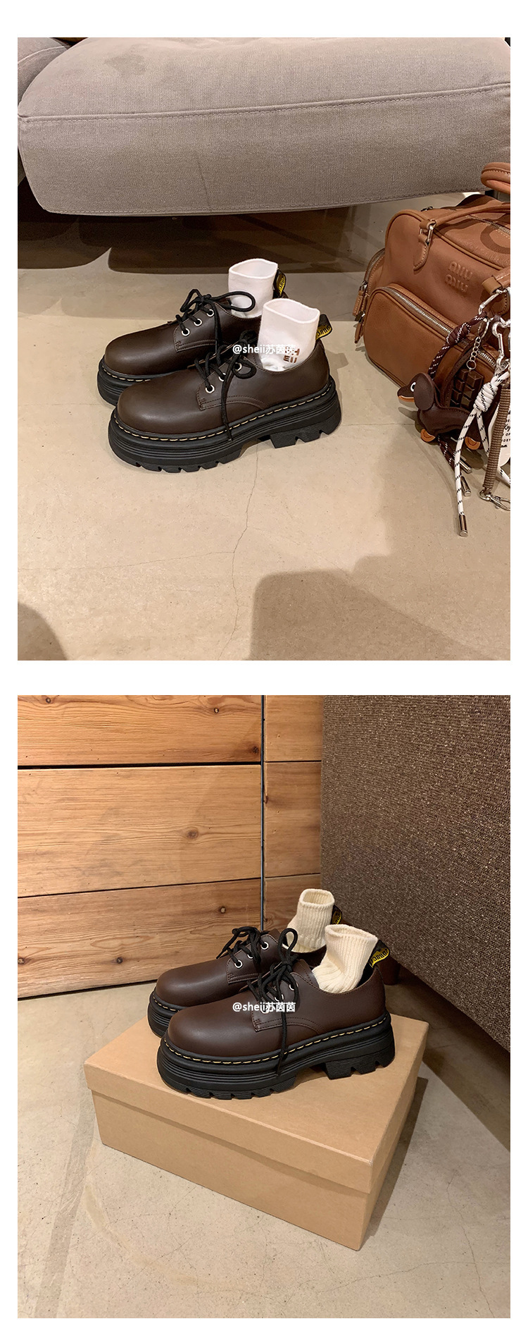 Cowhide Edition ~ Martin Retro 영국 레이스 업 두꺼운 바닥 증가 캐주얼 올 매치 더비 작은 가죽 신발 여성 사랑 싱글 신발