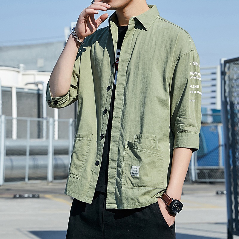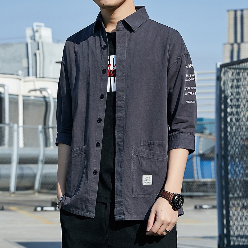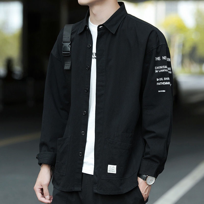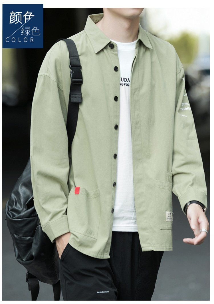 봄과 가을 코튼 셔츠 작업복 긴팔 셔츠 캐주얼 비 다림질 느슨한 비즈니스 남성 코트스토어 가기
