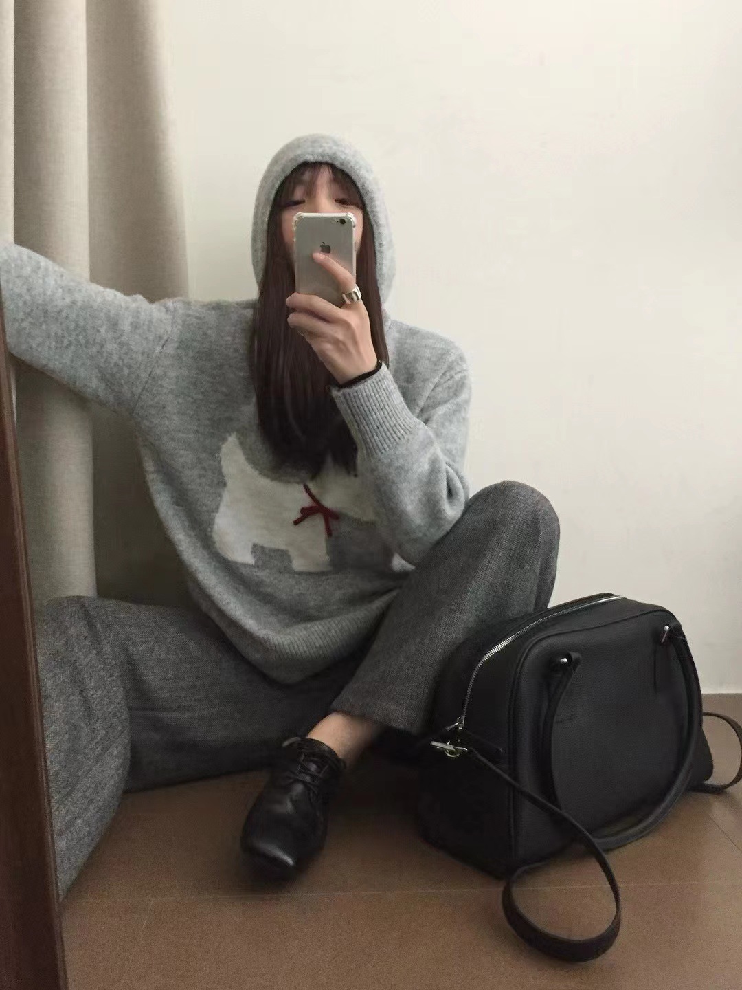 강아지 자수 후드 스웨터 2024 가을 새 울 니트웨어 캐주얼 대학 스타일 탑스토어 가기