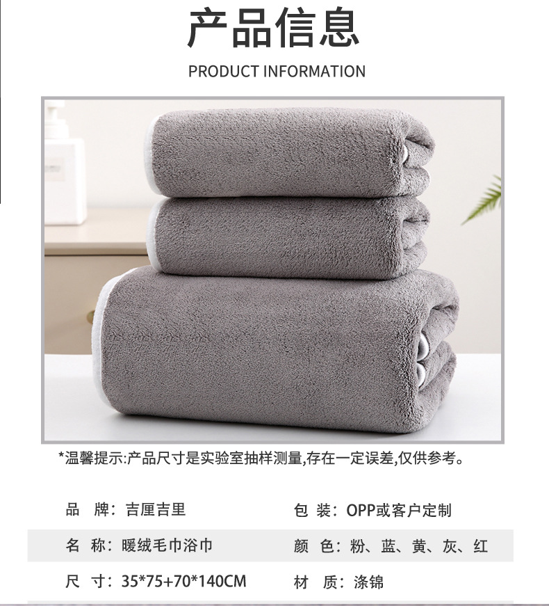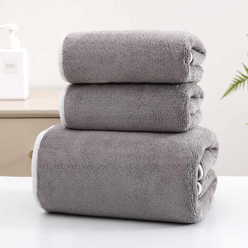 회색 빠른 건조 산호 양털 목욕 타월 두꺼운 3 피스 세트 물 흡수성 얼굴 세척 수건 비치 대형 목욕 타월 세트스토어 가기