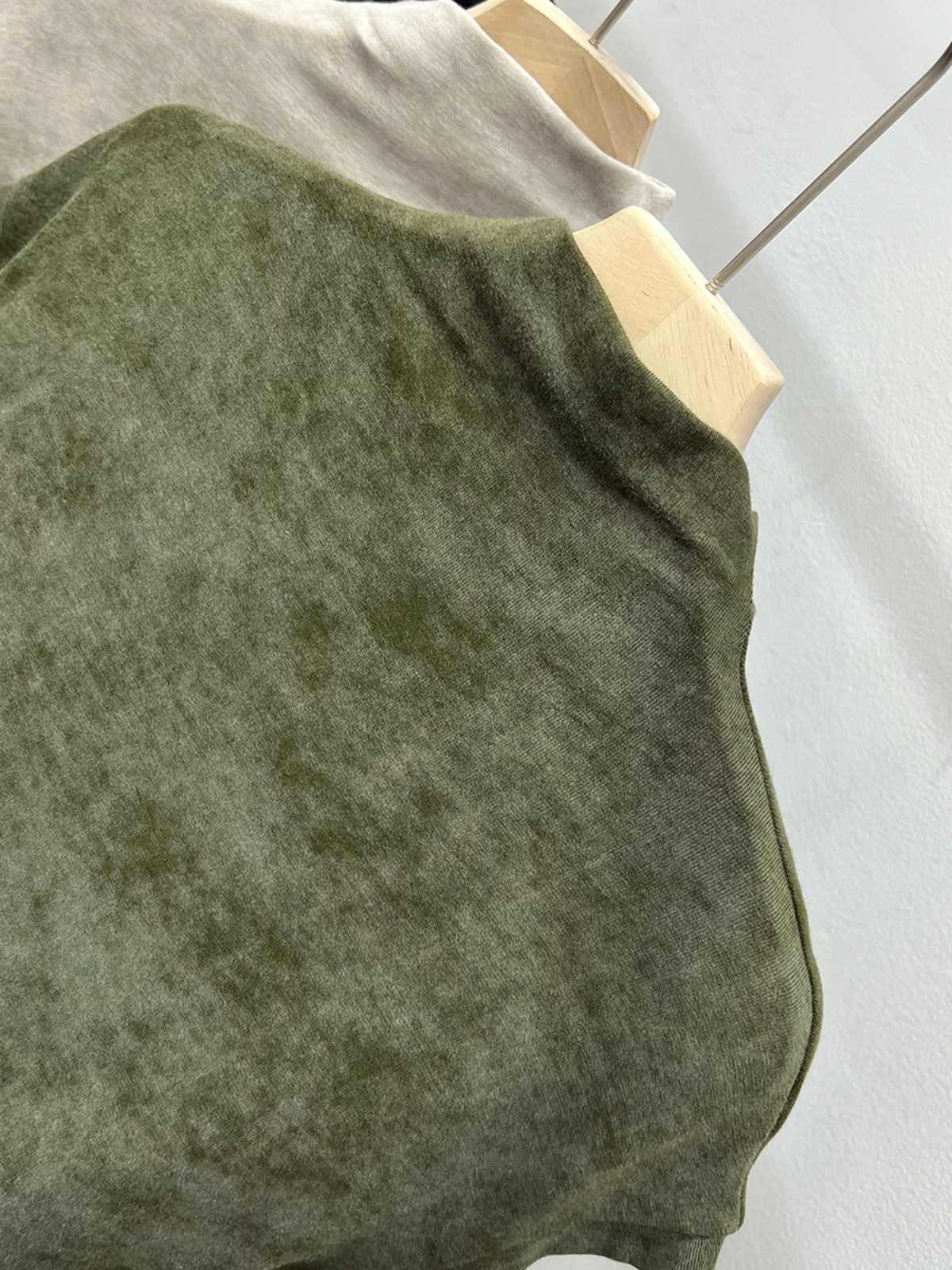 디자인 센스 틈새 세련된 타이 다이 탑 세미 하이 넥 반팔 티셔츠 여성의 2024 년 여름 새로운 플라잉 슬리브 베이스 셔츠스토어 가기