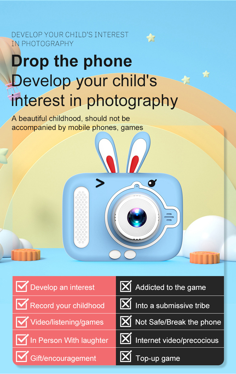 국경 새 어린이 카메라 미니 어린이 작은 SLR 카메라 만화 장난감 디지털 카메라 비디오 레코더