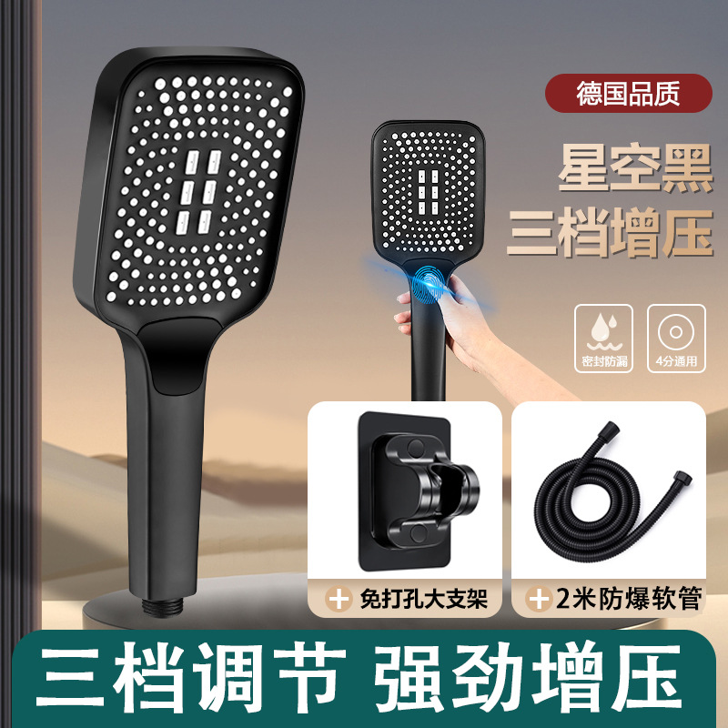 • [스타리 스카이 블랙] 부스터 샤워 - 2m 스테인레스 스틸 호스 - 브래킷