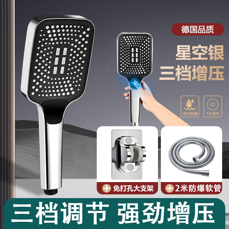• [전기도금 실버] 슈퍼차지 샤워기 - 2m 스테인레스 스틸 호스 - 브래킷