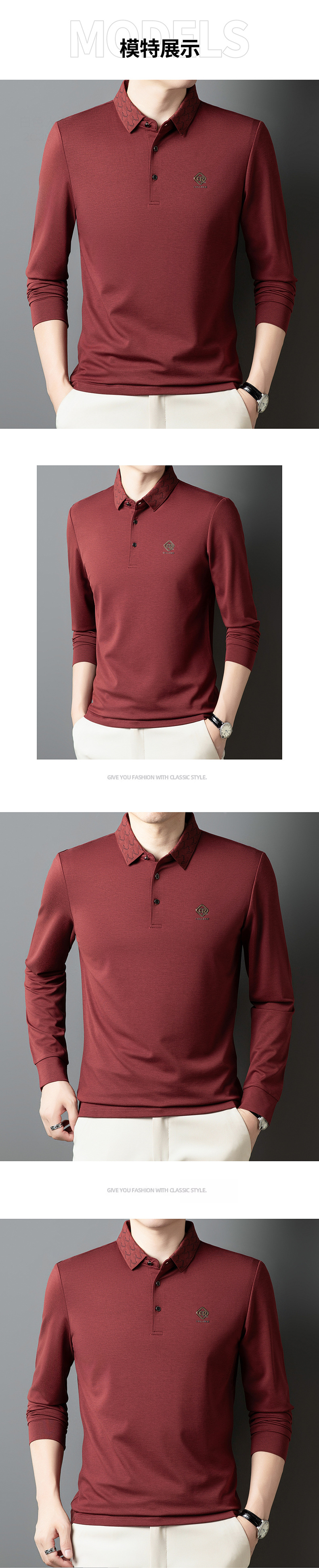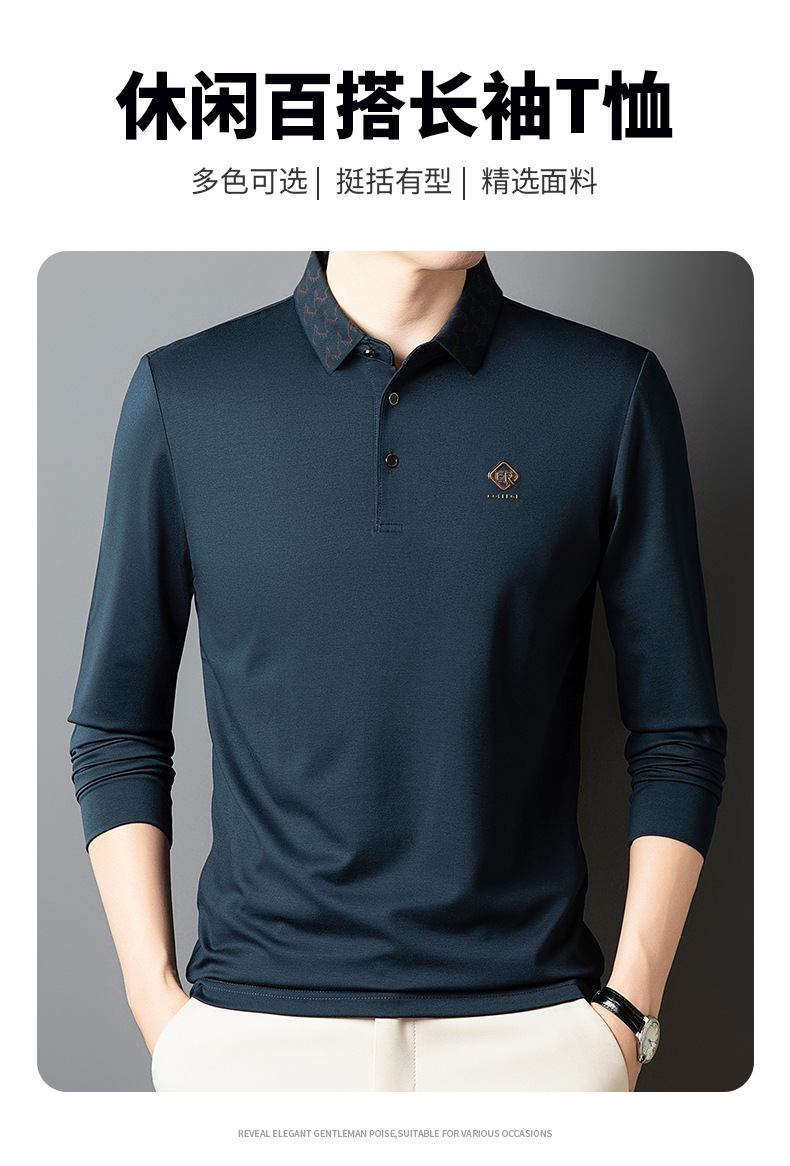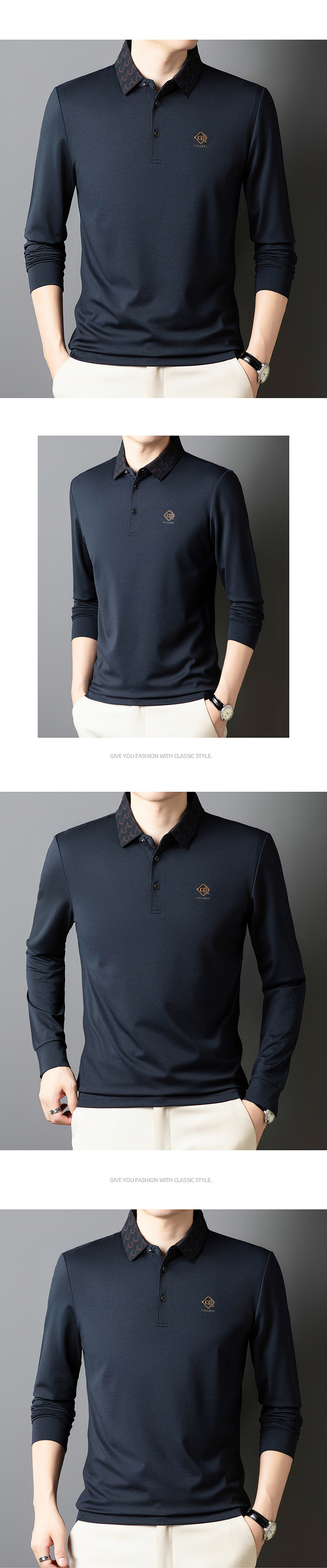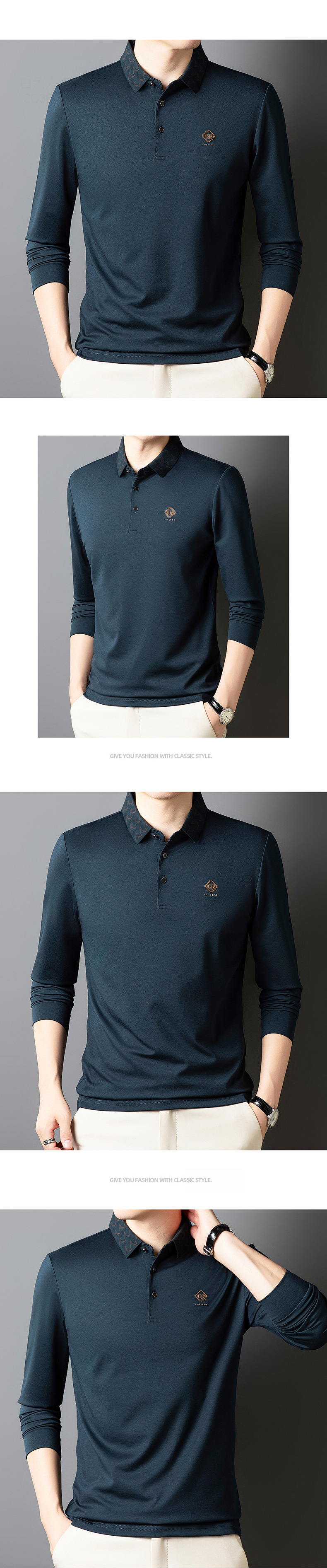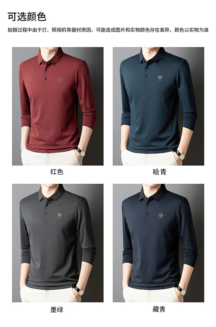 2024 긴 소매 폴로 셔츠 남자의 봄과 가을 새로운 단색 아빠의 비즈니스 티셔츠 남자의 캐주얼 베이스 셔츠 탑스토어 가기