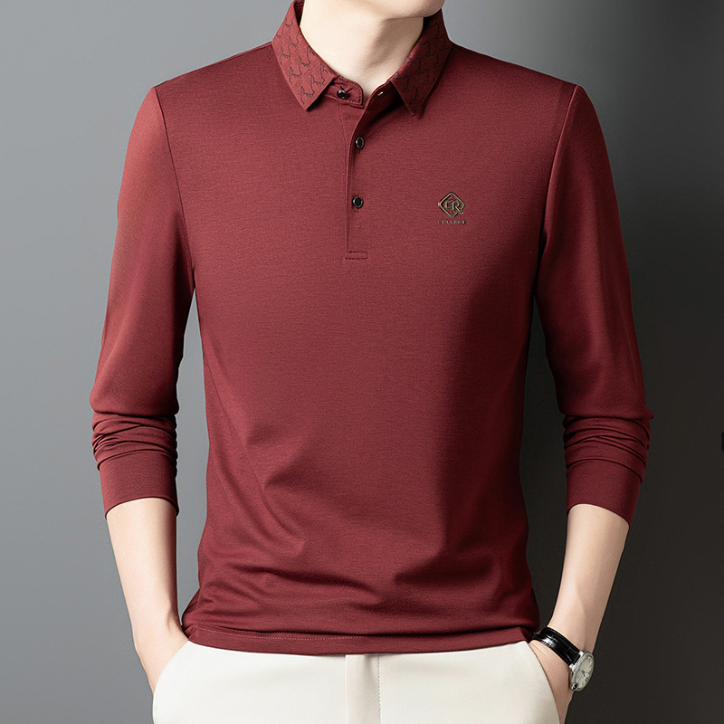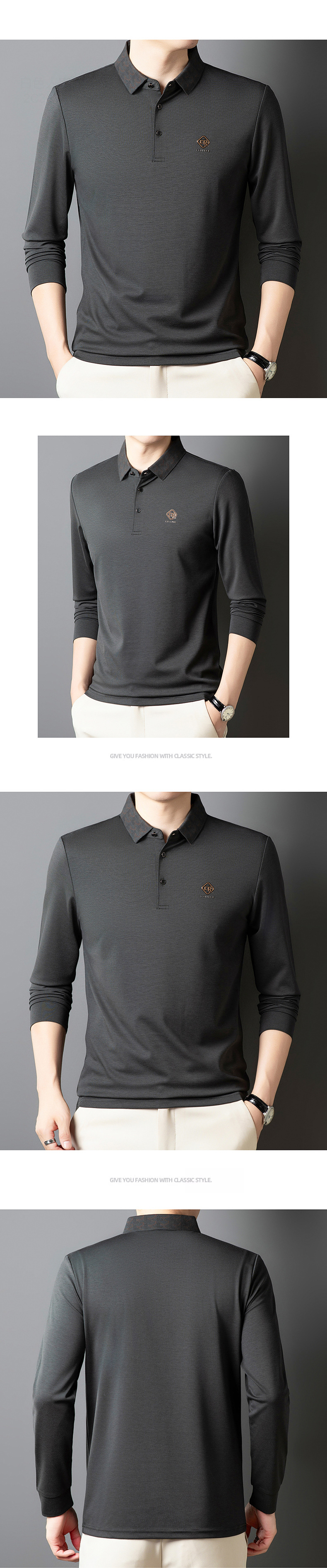 2024 긴 소매 폴로 셔츠 남자의 봄과 가을 새로운 단색 아빠의 비즈니스 티셔츠 남자의 캐주얼 베이스 셔츠 탑