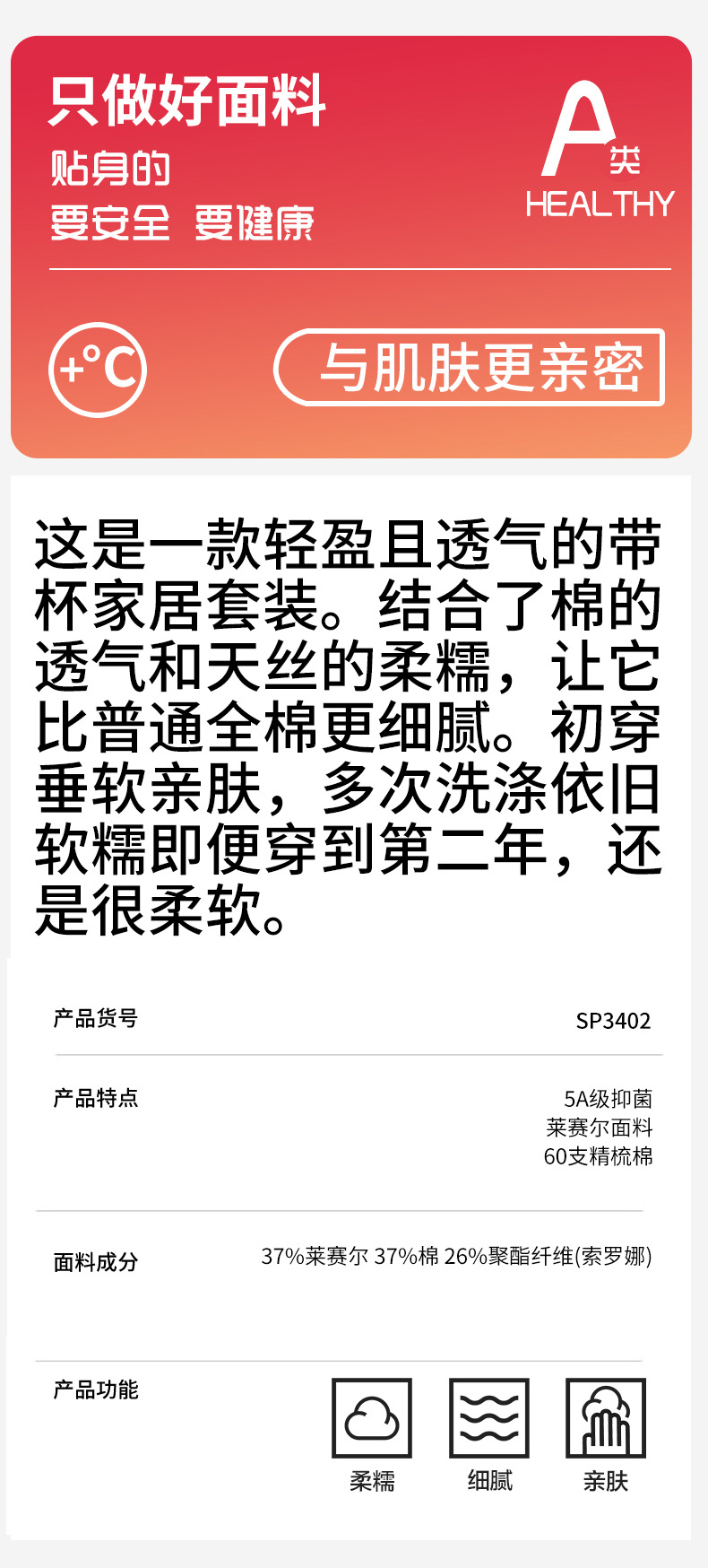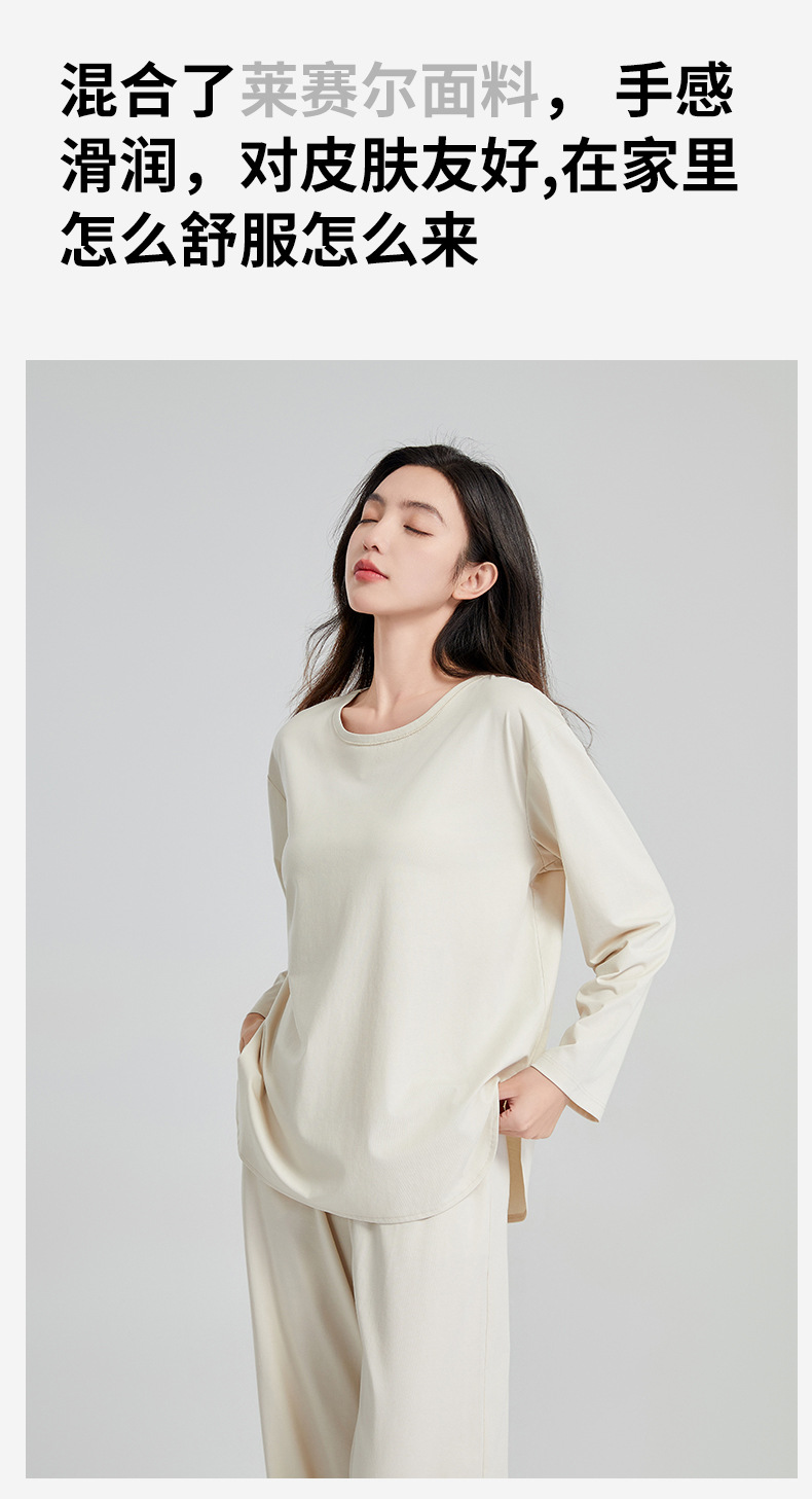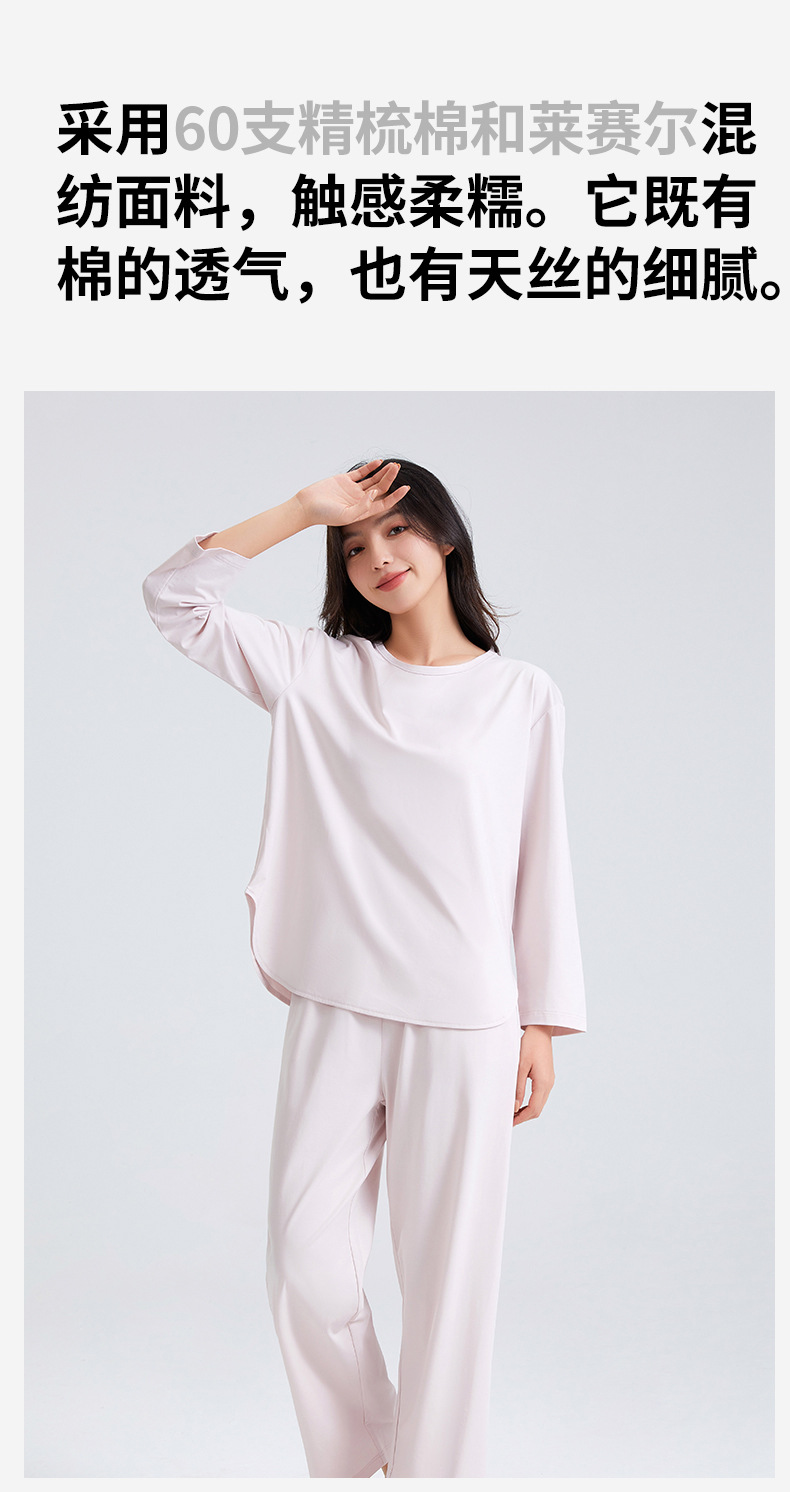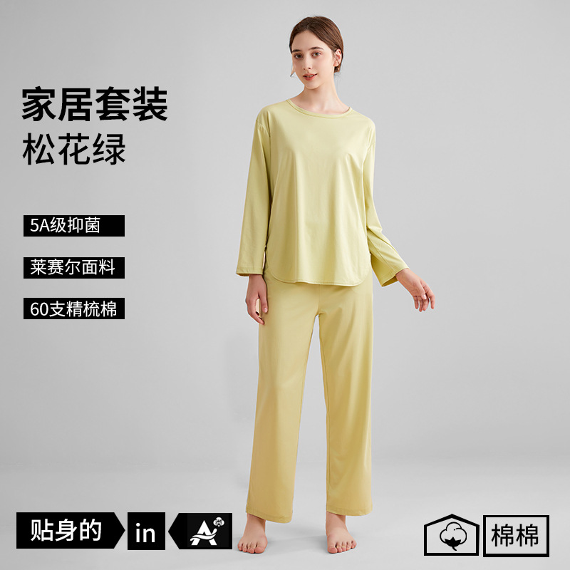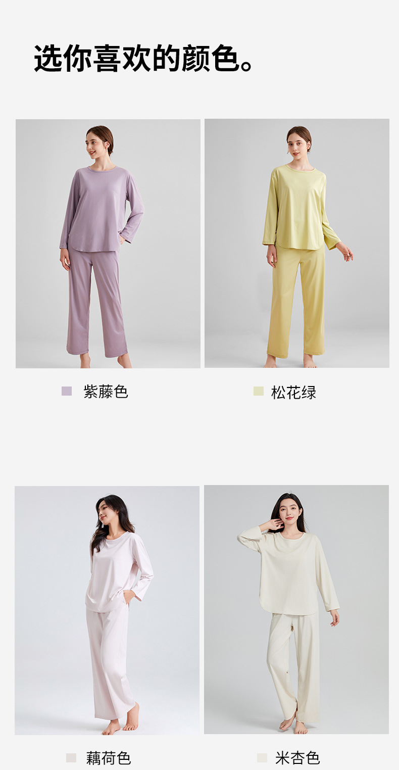 【재고정리】가을용 여성용 라이셀 코튼 항균 긴팔 긴바지 브라프리 홈웨어 (가슴 패드 포함)스토어 가기