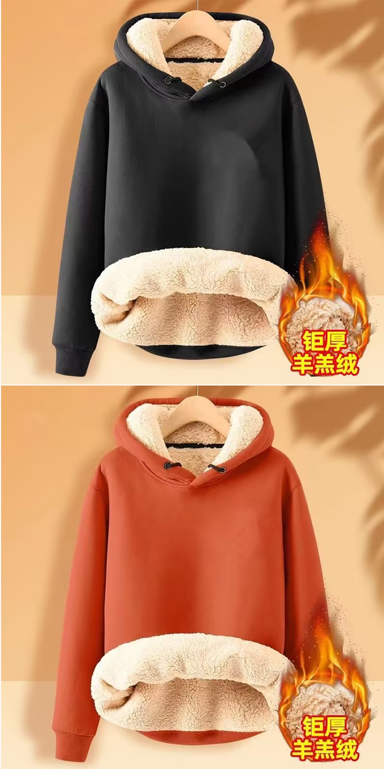 양가죽 크루 넥 스웨트 셔츠 남성용 겨울 청소년 두꺼운 따뜻한 솔리드 컬러 후드 탑 플러스 사이즈 남성용 트렌디 코트스토어 가기