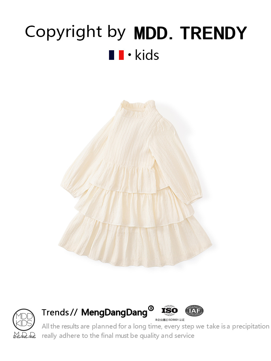 MDD 여아 투피스 원피스 2024 봄과 가을 한국 스타일 아기 소녀 긴 소매 스커트 공주 스커트 케이크 스커트