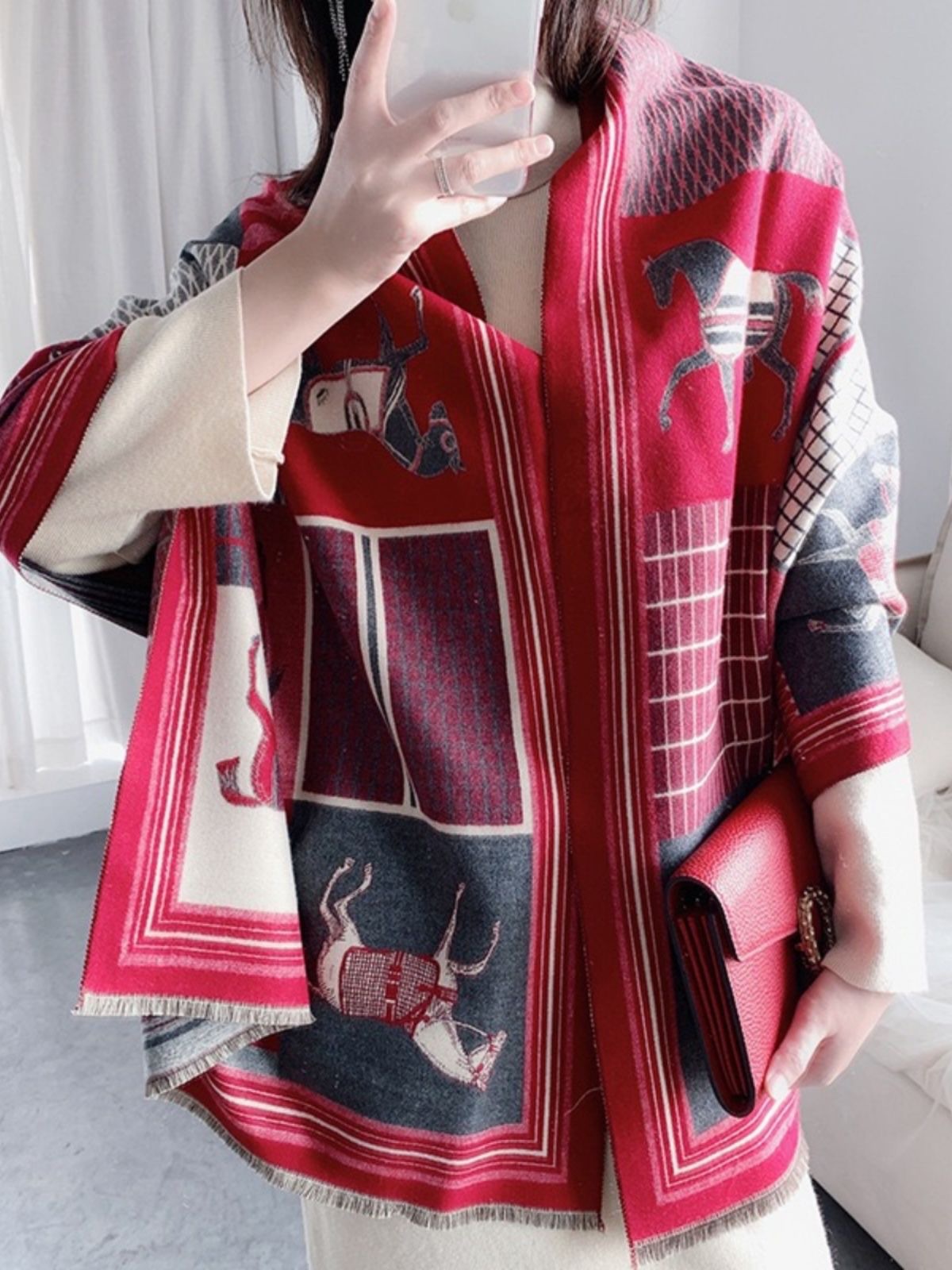 • 체크무늬 말 삼색-빨간색