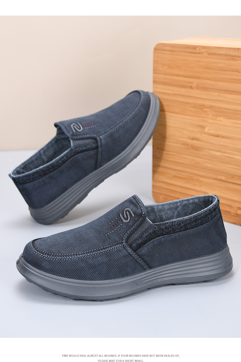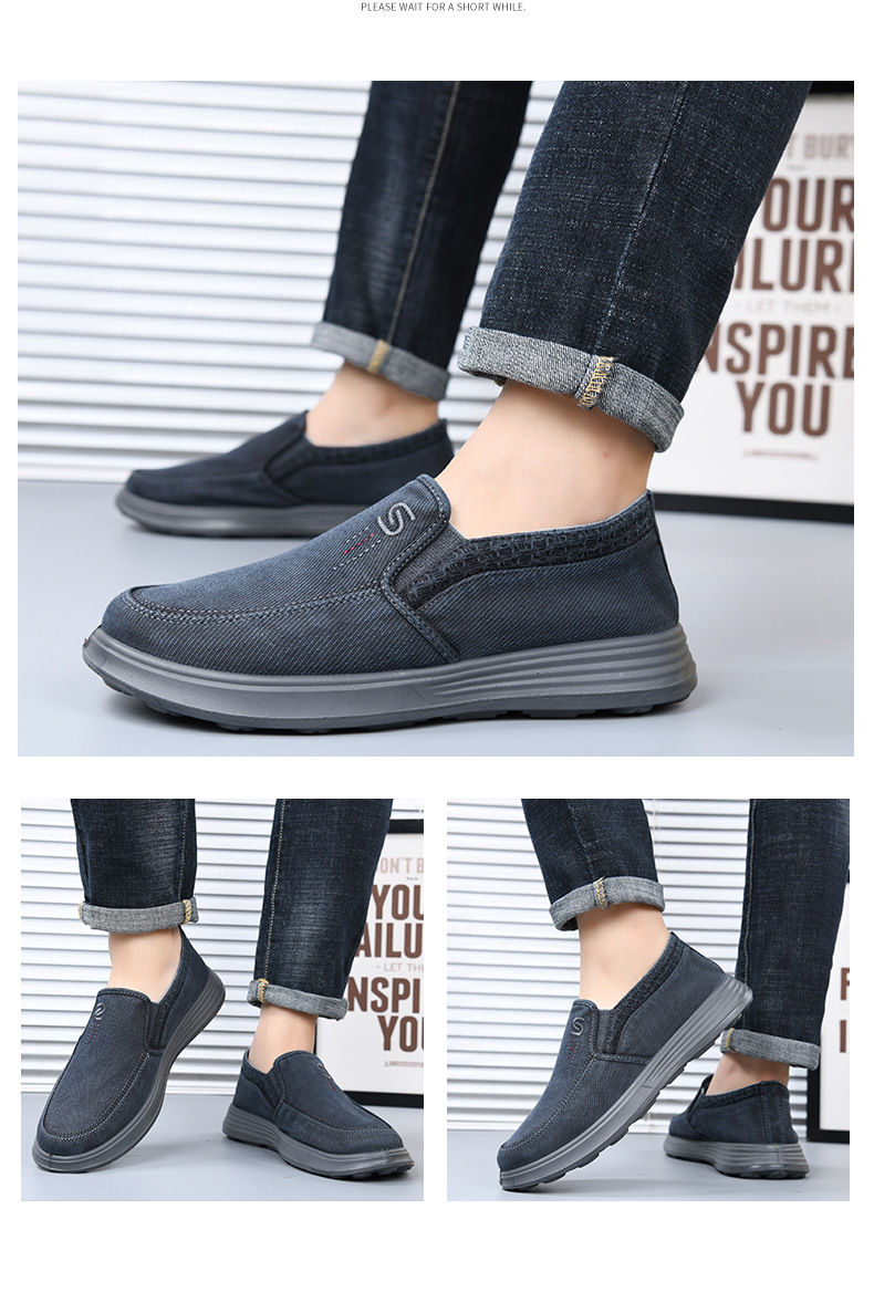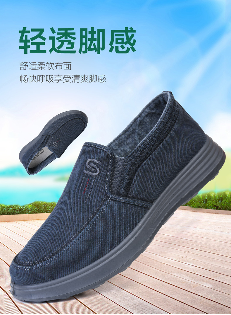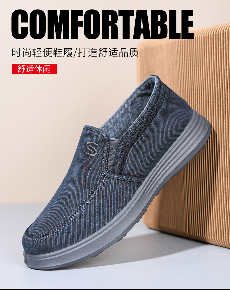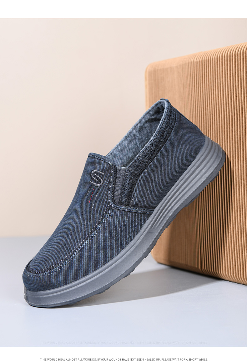 봄과 가을 아빠의 새로운 부드러운 밑창의 올드 베이징 천 신발 남성 캐주얼 신발 슬립 온 캔버스 신발 트렌디한 게으른 운동화
