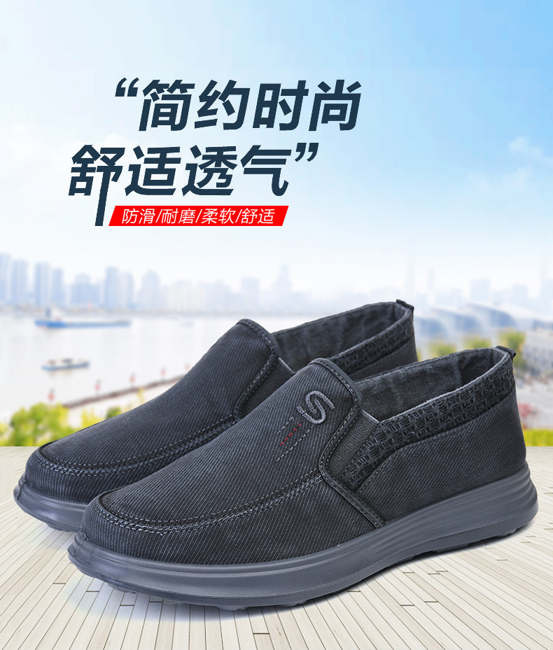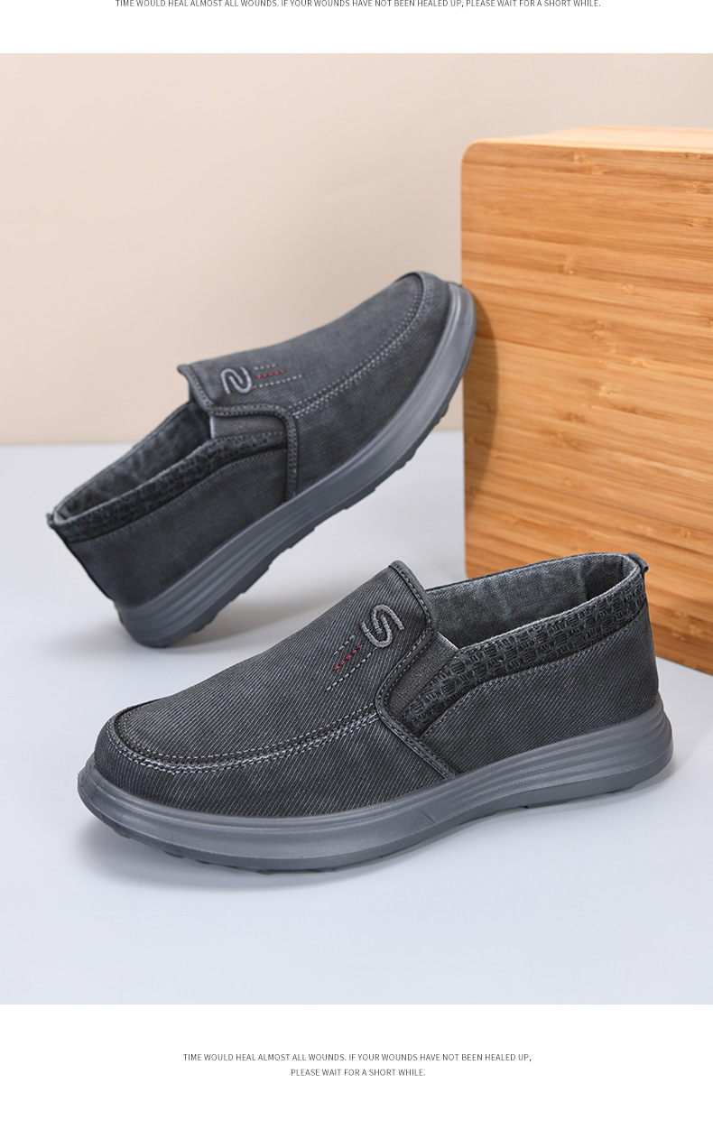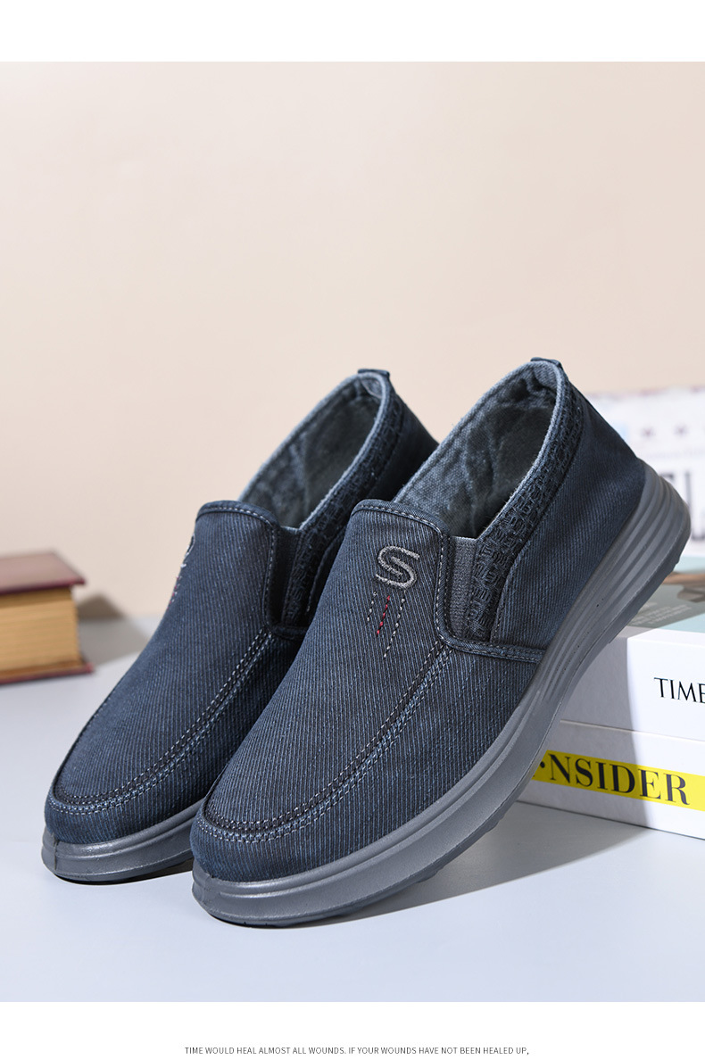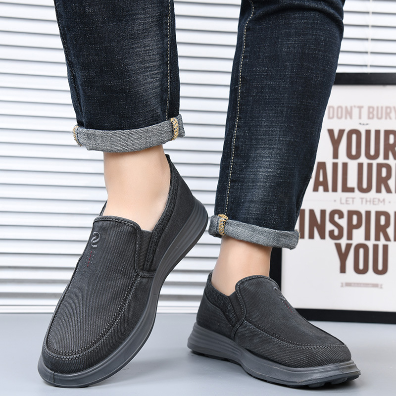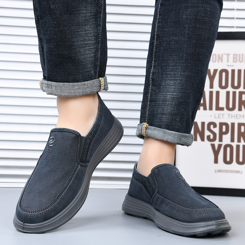 봄과 가을 아빠의 새로운 부드러운 밑창의 올드 베이징 천 신발 남성 캐주얼 신발 슬립 온 캔버스 신발 트렌디한 게으른 운동화