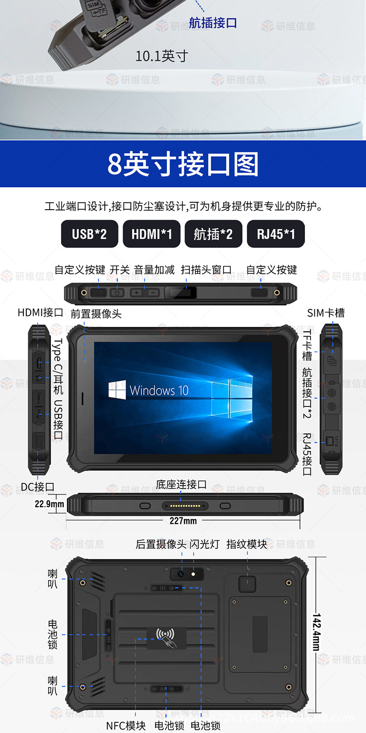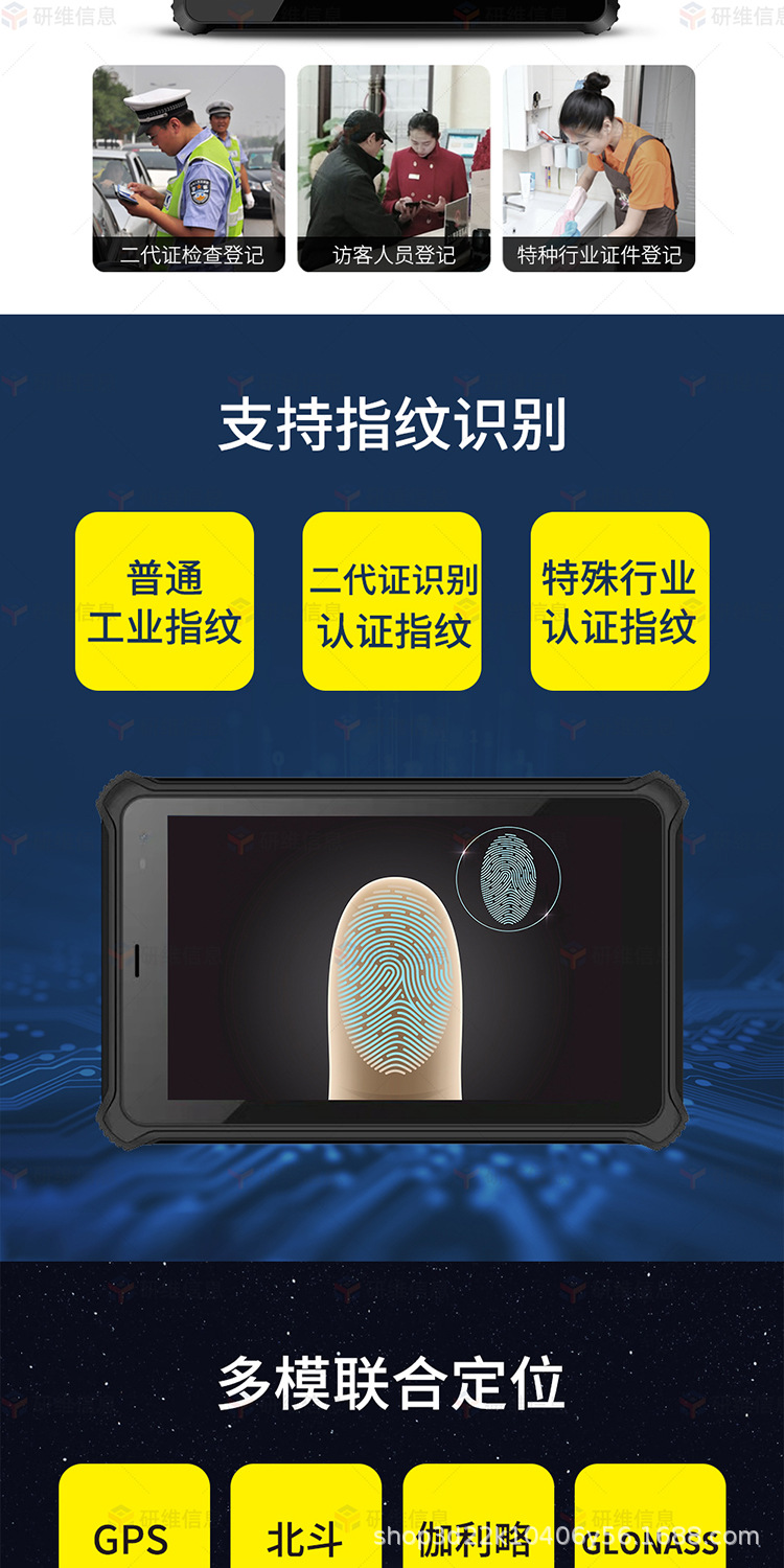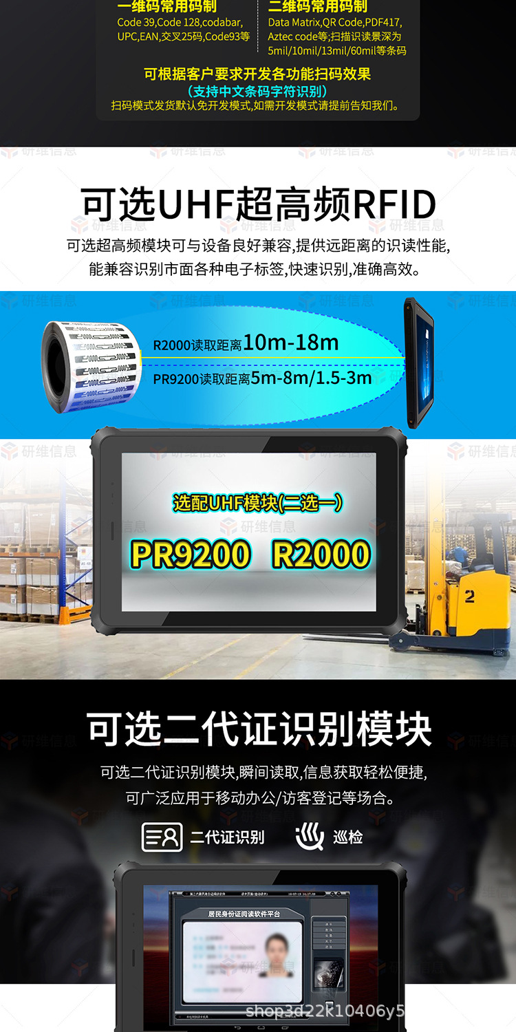 可选配功能 二维码扫描头、超高频UHF、二代离线身份证、指纹识别