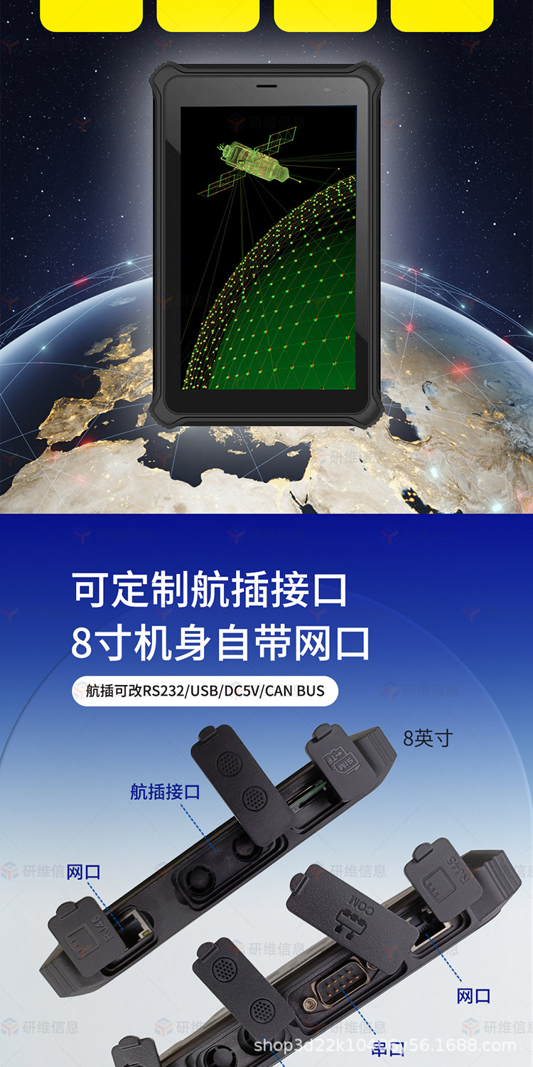 航插预留孔位*2,可定制航插接口(可改RS232/USB/DC5V/CAN BUS)