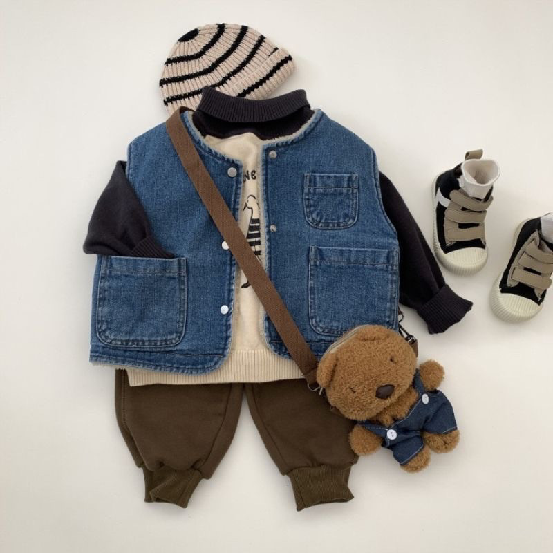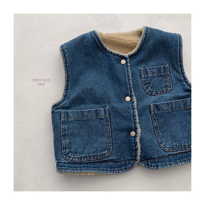 새로운 어린이 두꺼운 기모 데님 조끼 외부 착용 겨울 소년의 새로운 소녀 아기 따뜻한 조끼 재킷스토어 가기