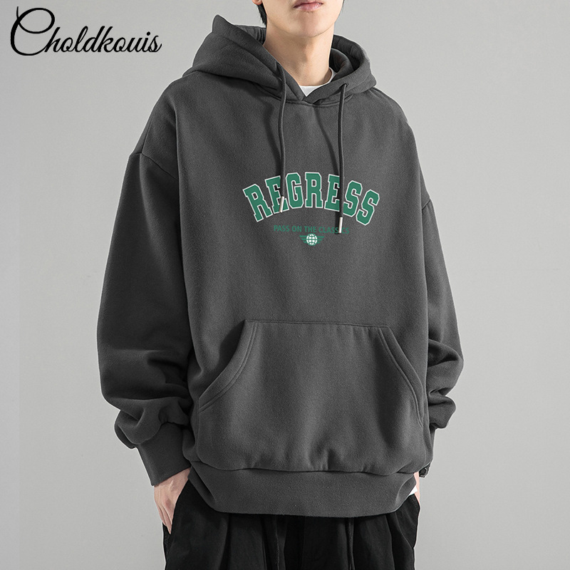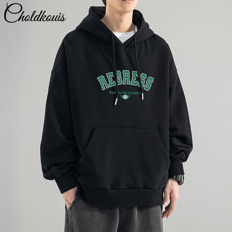 가을 새로운 느슨한 무거운 후드 스웨트 셔츠 남자와 여자의 편지 미국 스타일 패션 브랜드 홍콩 스타일 긴 소매 커플스토어 가기