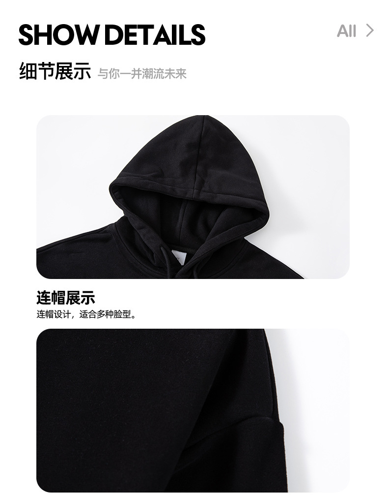 • 블랙 후드 스웨트셔츠 플러스 플리스-8561【GL】
