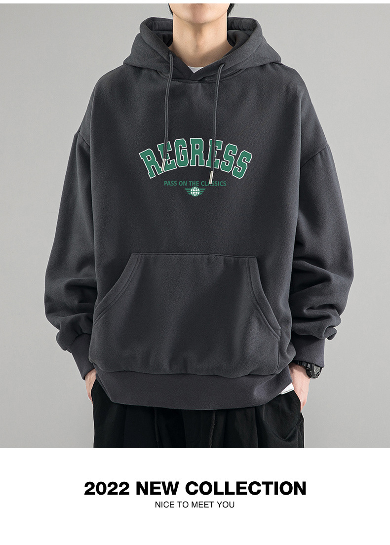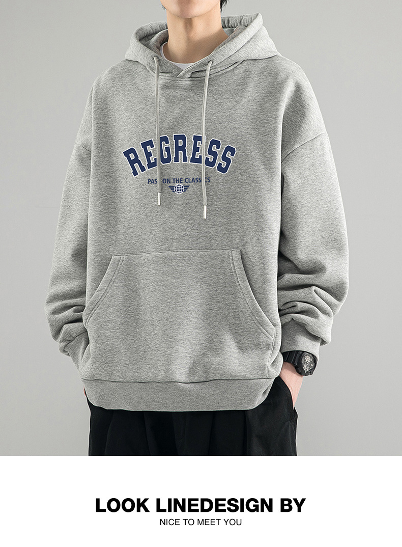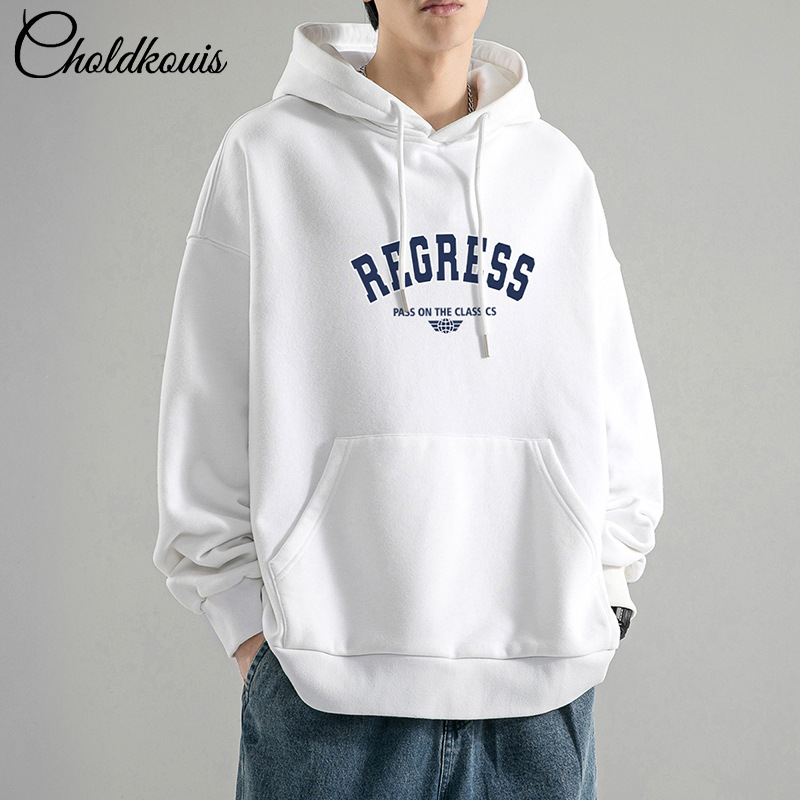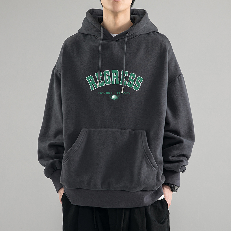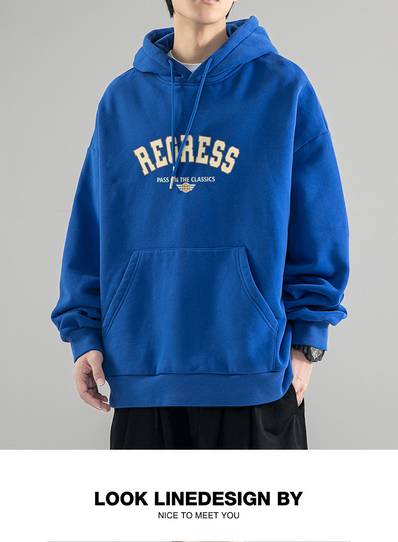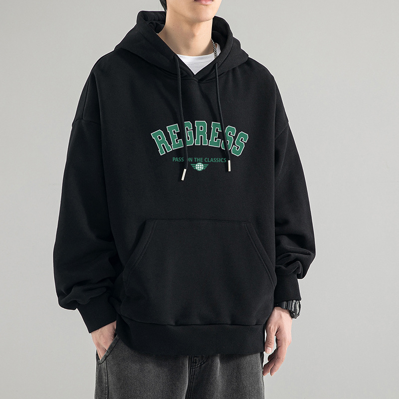 가을 새로운 느슨한 무거운 후드 스웨트 셔츠 남자와 여자의 편지 미국 스타일 패션 브랜드 홍콩 스타일 긴 소매 커플