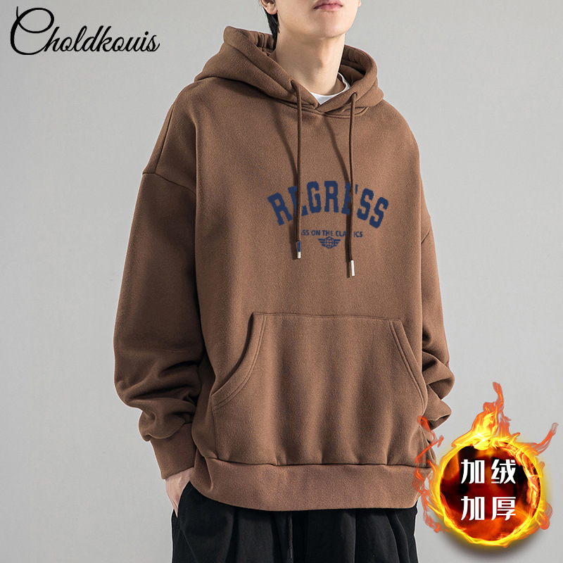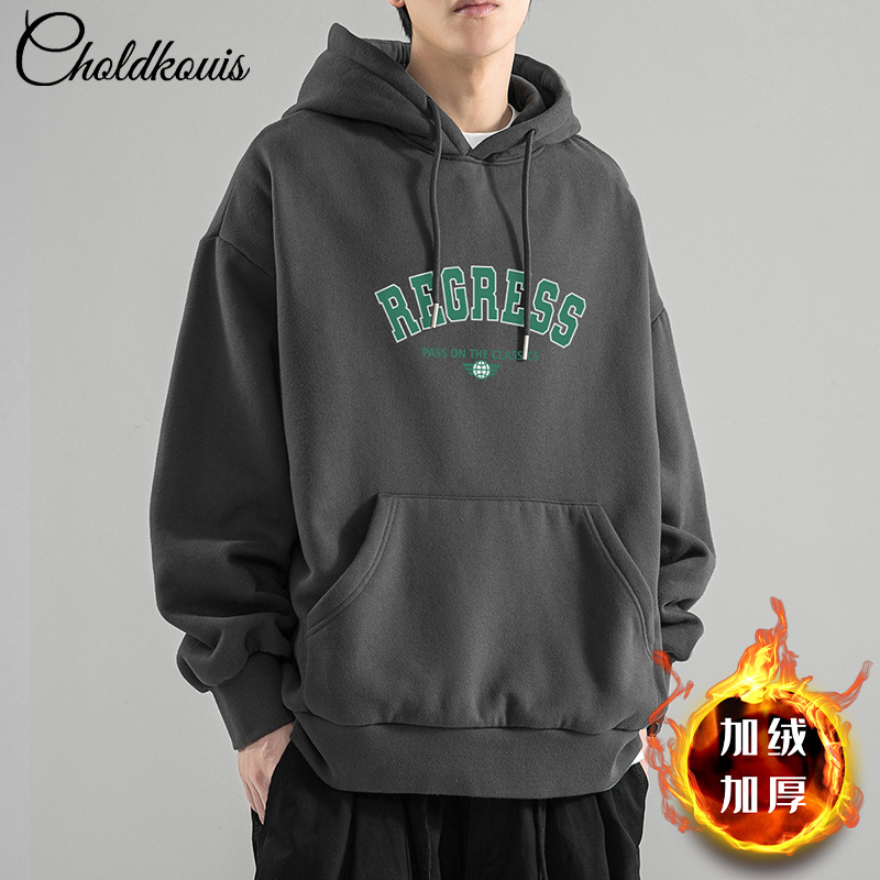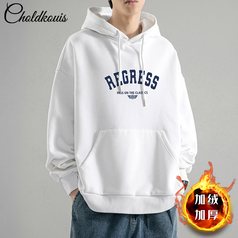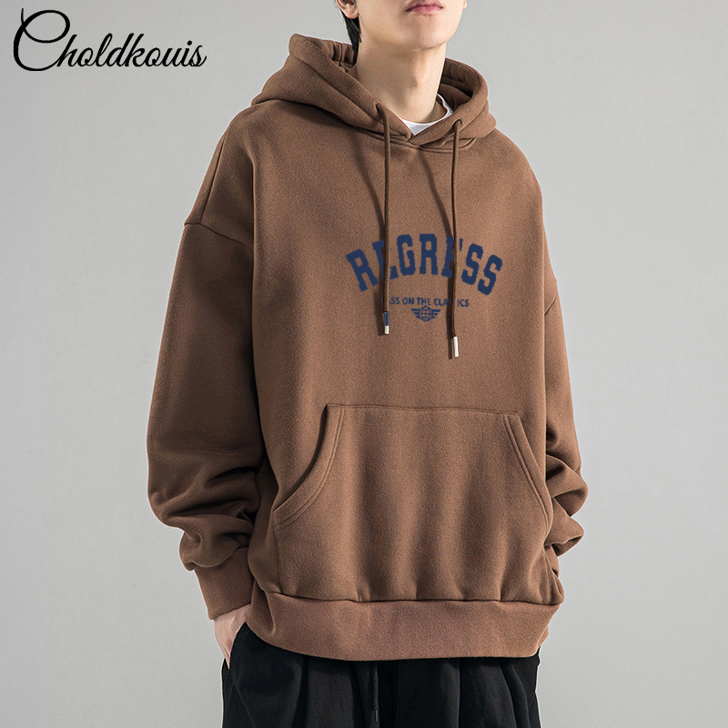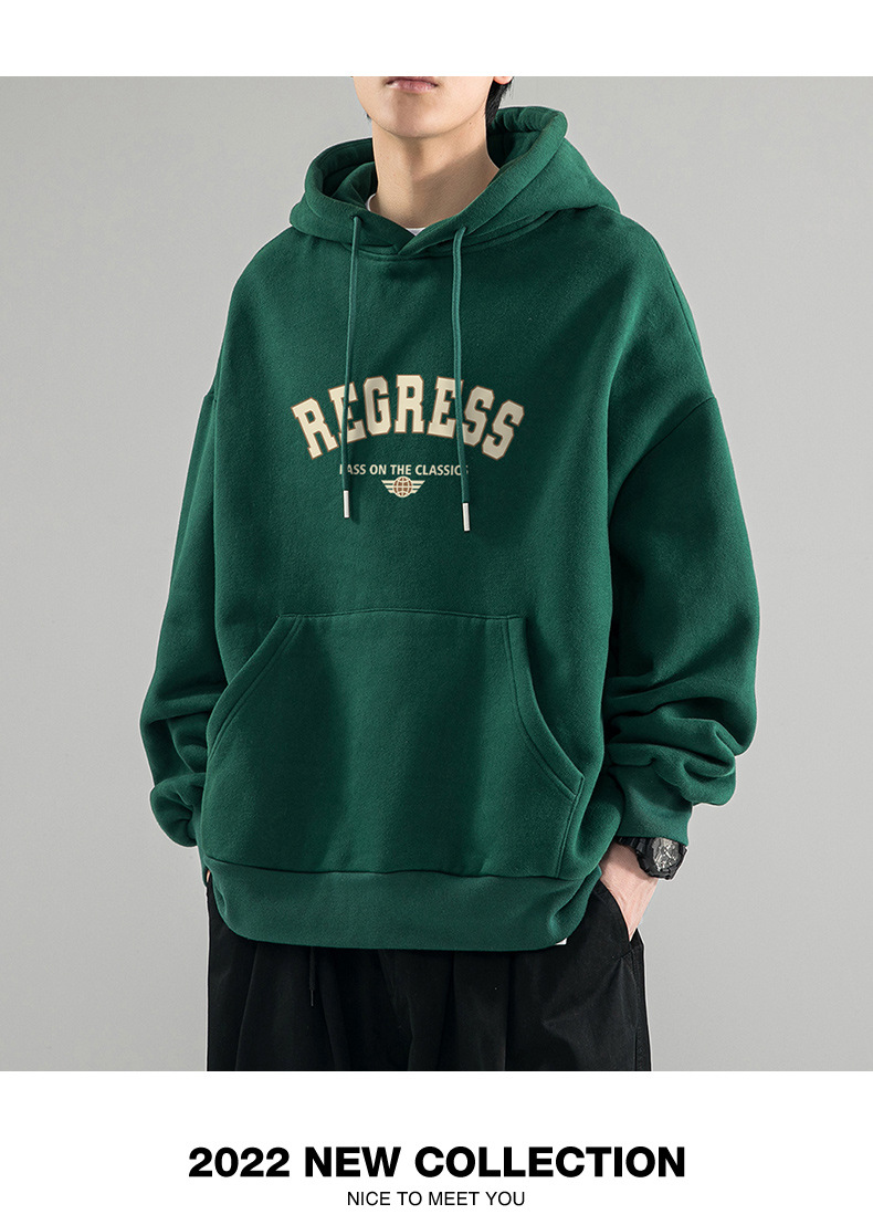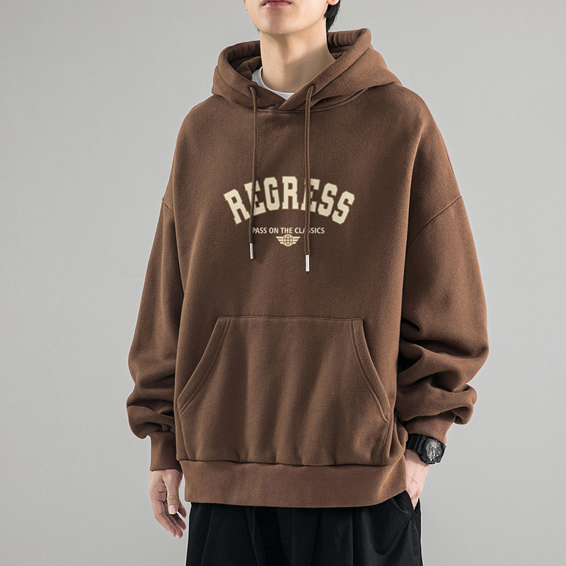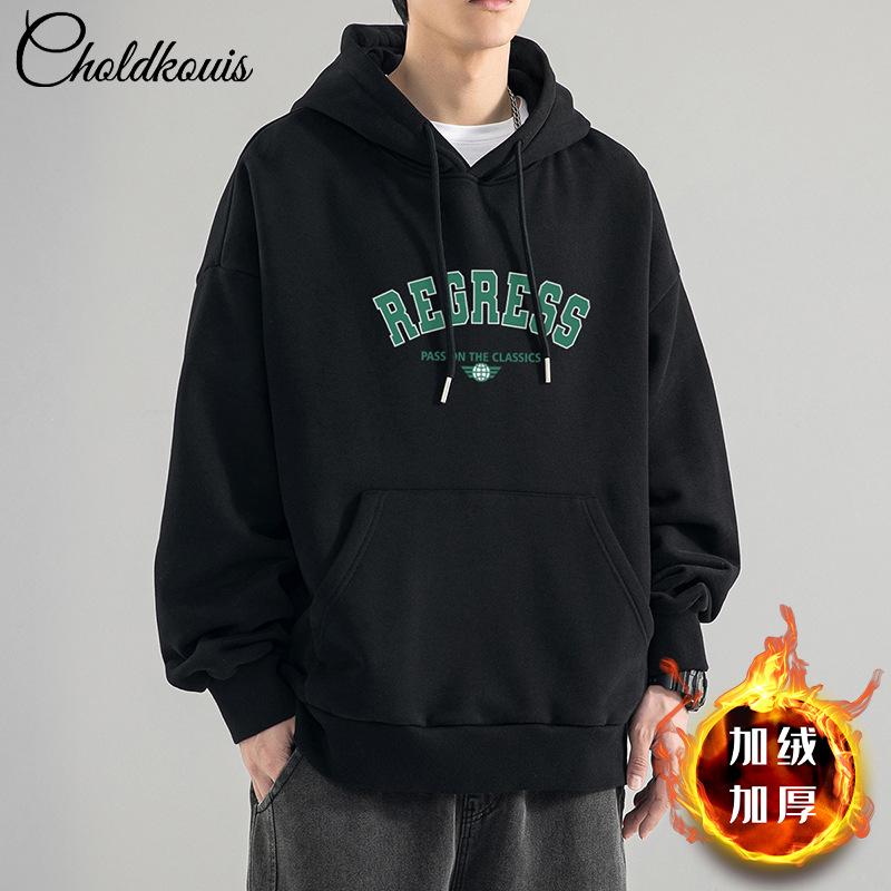 가을 새로운 느슨한 무거운 후드 스웨트 셔츠 남자와 여자의 편지 미국 스타일 패션 브랜드 홍콩 스타일 긴 소매 커플