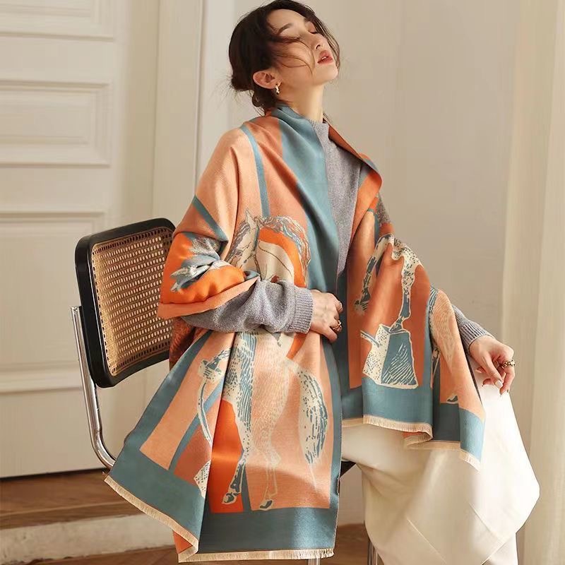 새로운 유럽과 미국의 복고풍 전쟁 마투 모방 캐시미어 가을과 겨울 따뜻한 스카프 여행 사진 장식 큰 목도리 스카프스토어 가기
