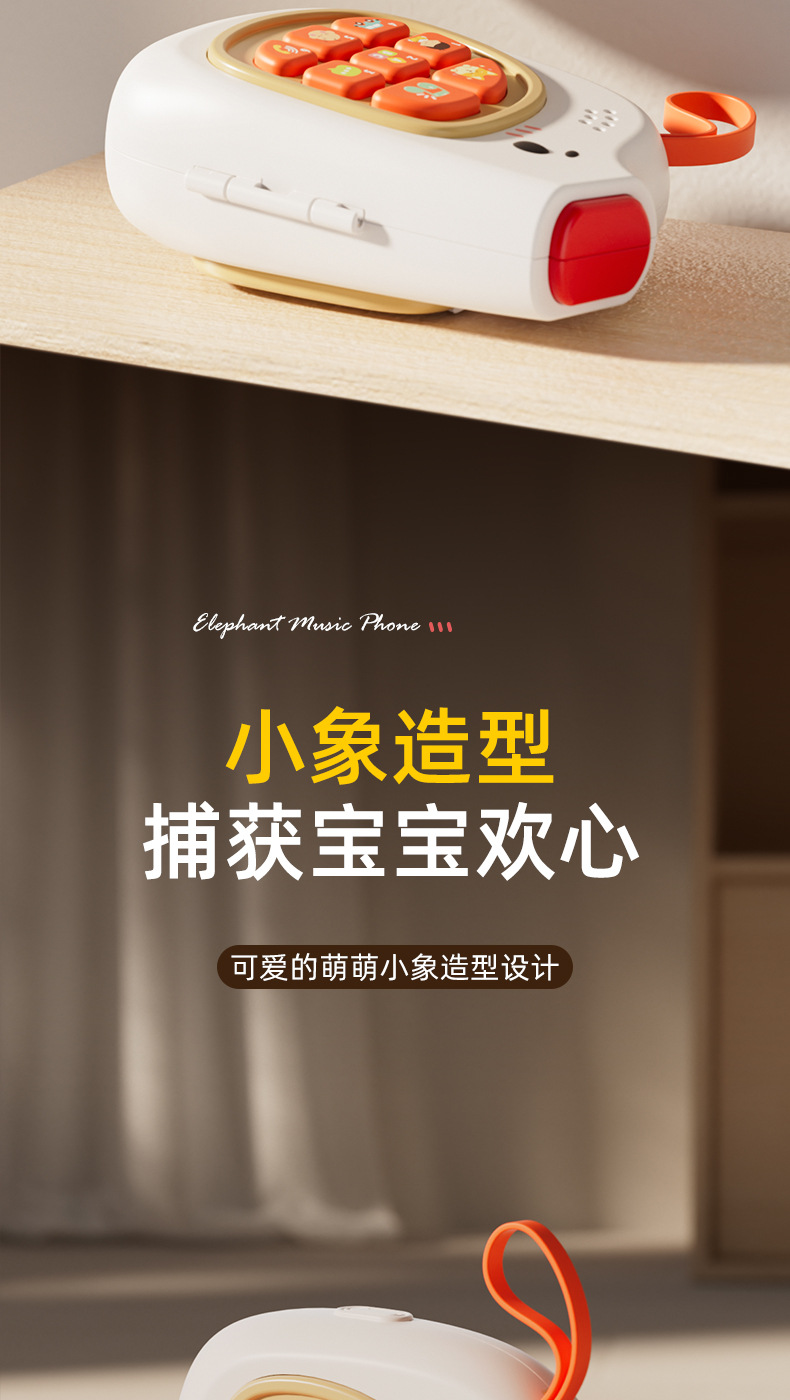 귀여운 코끼리 아기 음악 휴대폰, 바쁜 놀이판, 회전 놀이, 핸들 잠금 해제, 외출용 휴대 아기 조기 교육 장난감