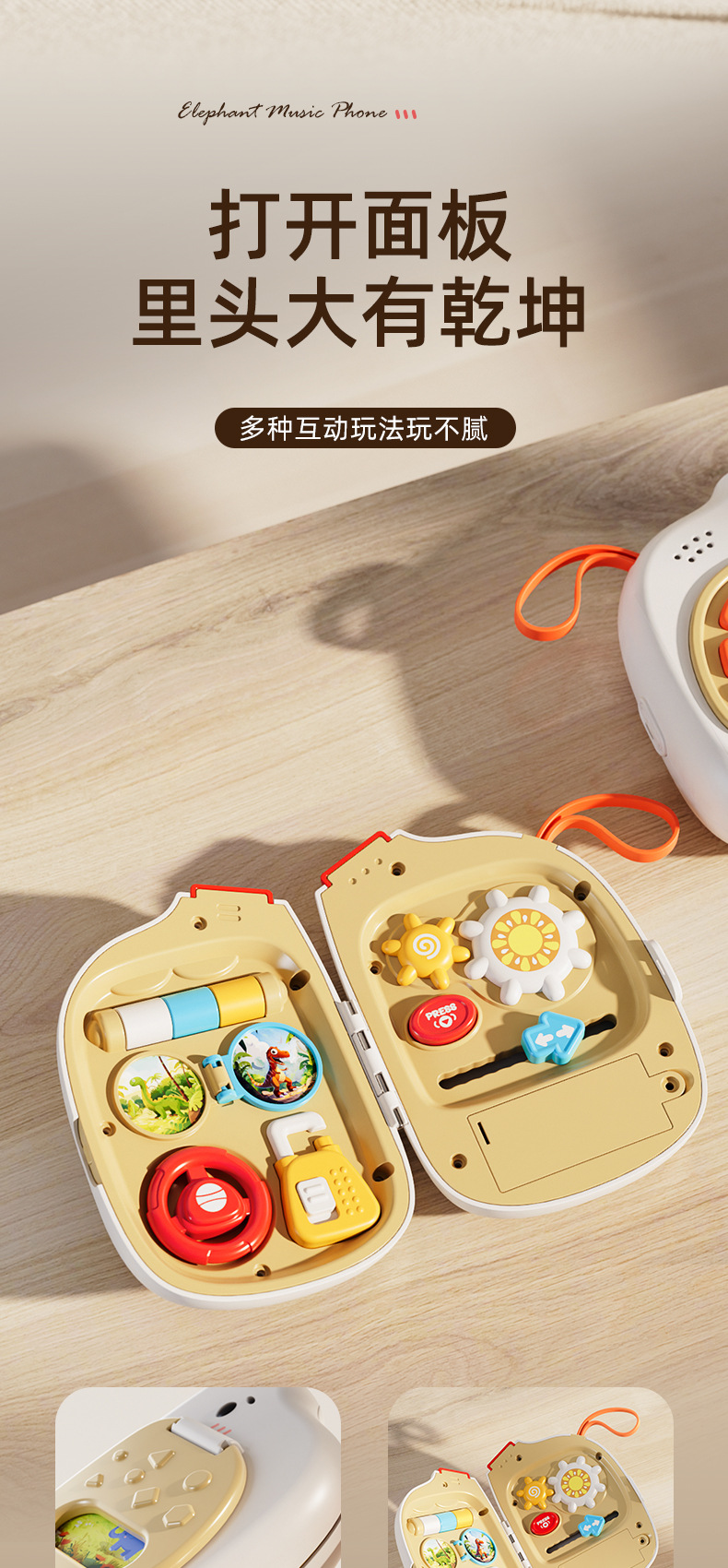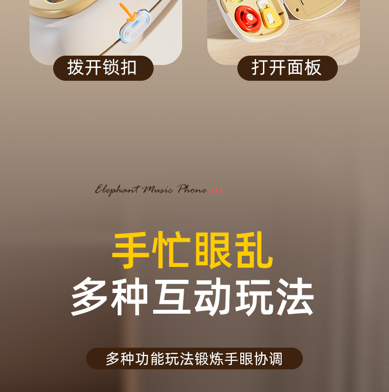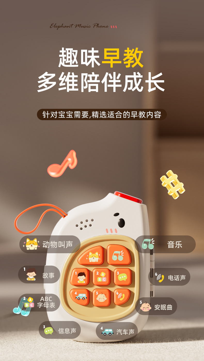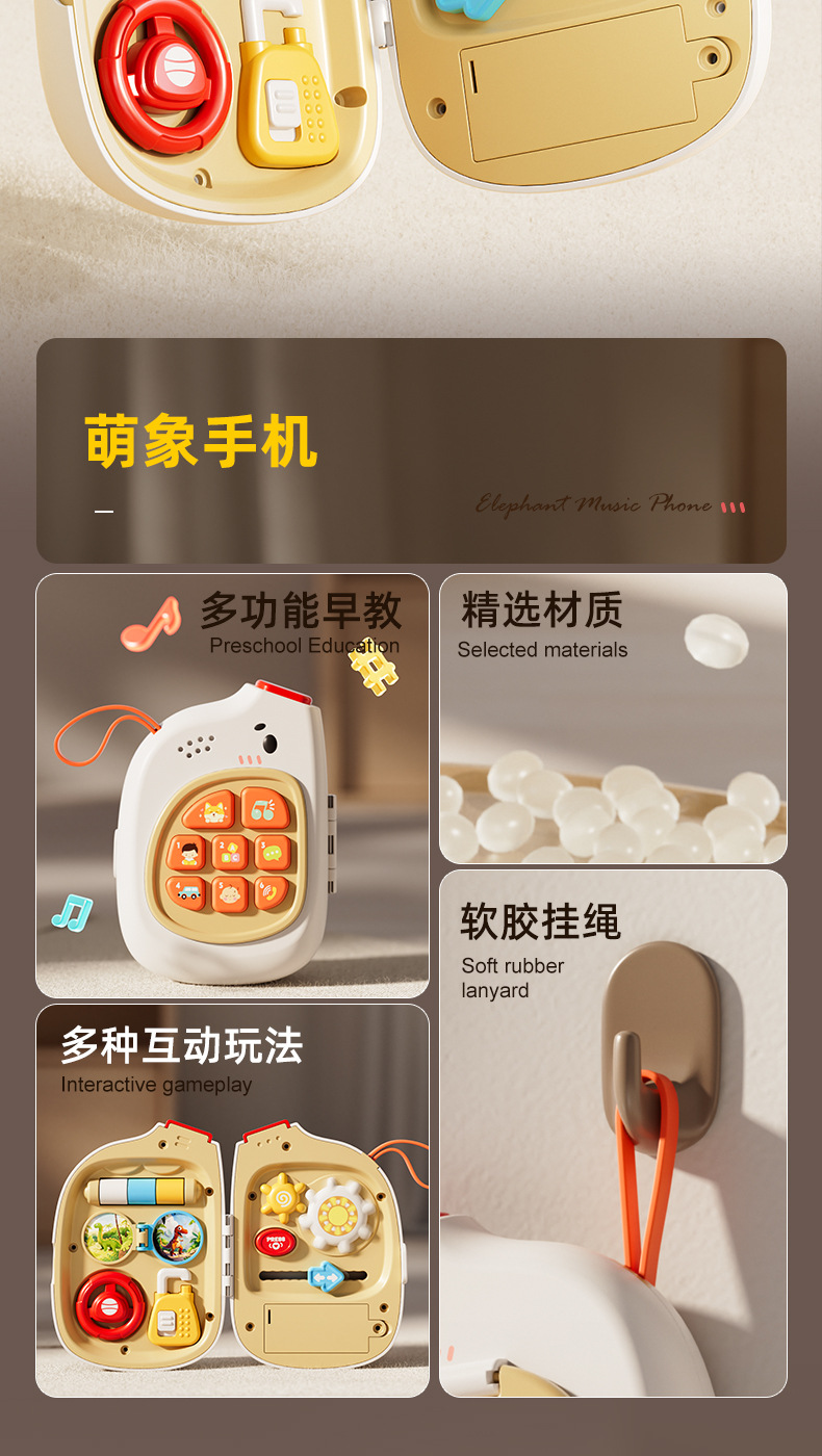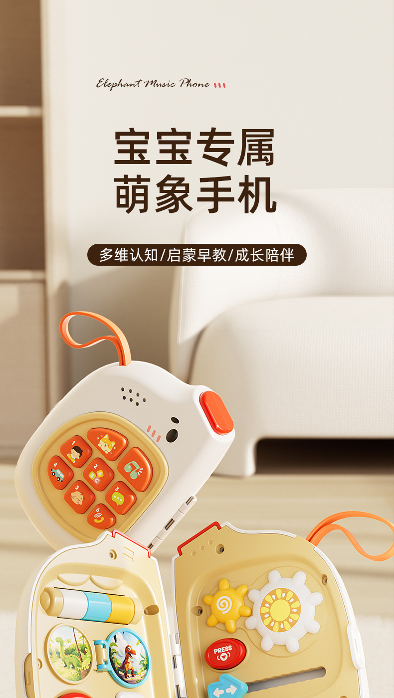귀여운 코끼리 아기 음악 휴대폰, 바쁜 놀이판, 회전 놀이, 핸들 잠금 해제, 외출용 휴대 아기 조기 교육 장난감스토어 가기
