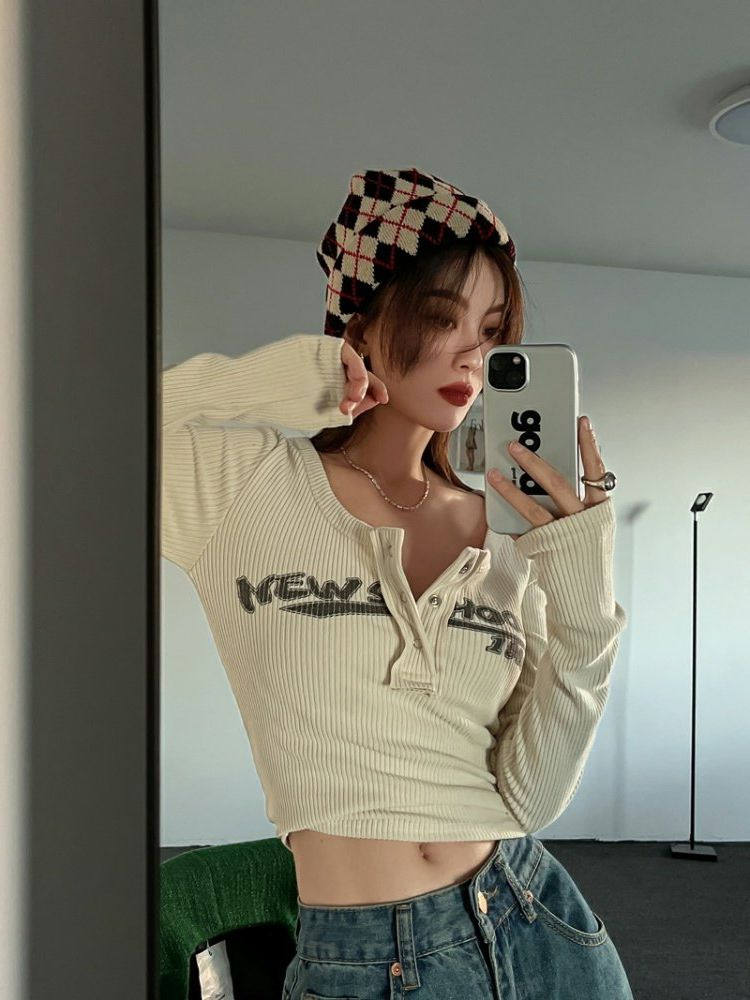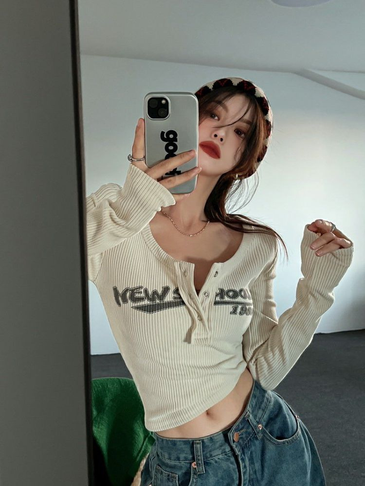 K20 # 순수한 스파이스 걸스 섹시 인 타이드베이스 셔츠 여성의 가을 새로운 단단한 짧은 긴 소매 재킷스토어 가기