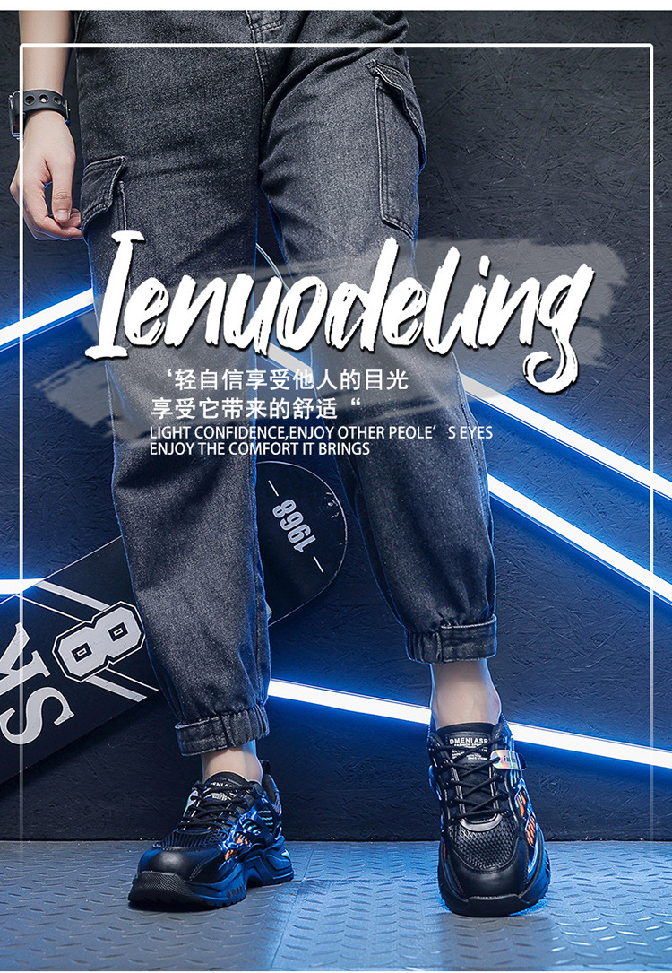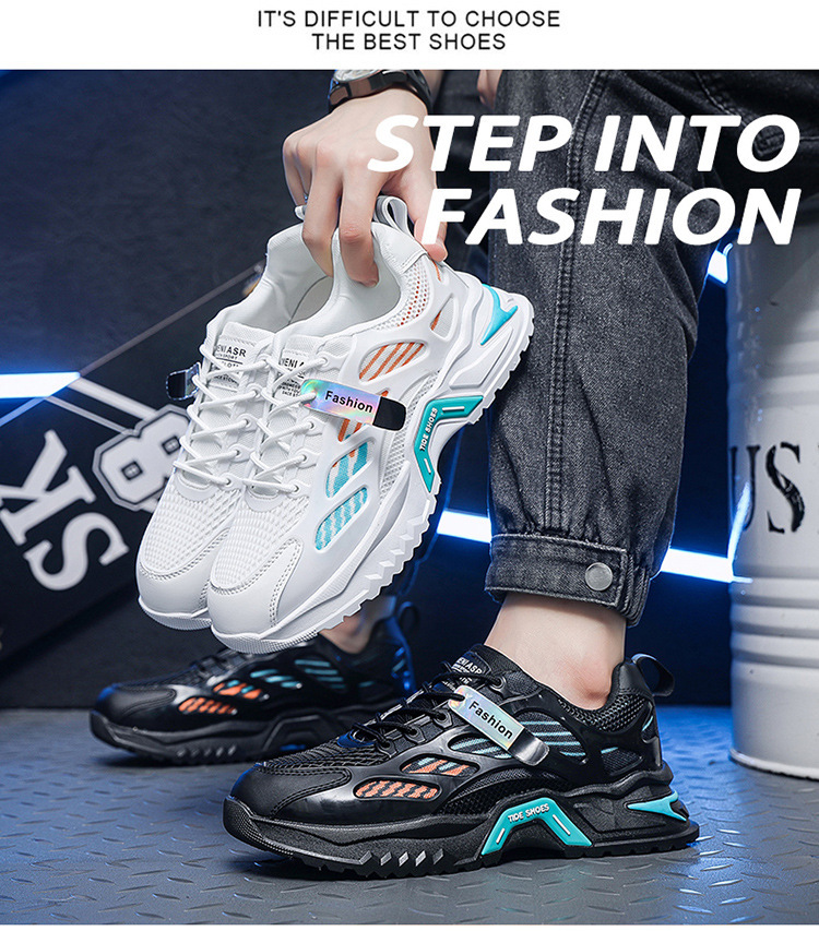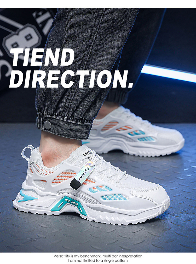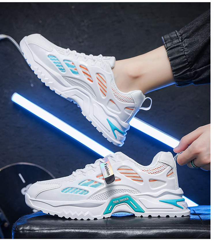 여름 남자 신발 새로운 통기성 메쉬 스포츠 신발 남자 한국식 트렌디 올매치 두꺼운 밑창 캐주얼 러닝 아빠 신발스토어 가기