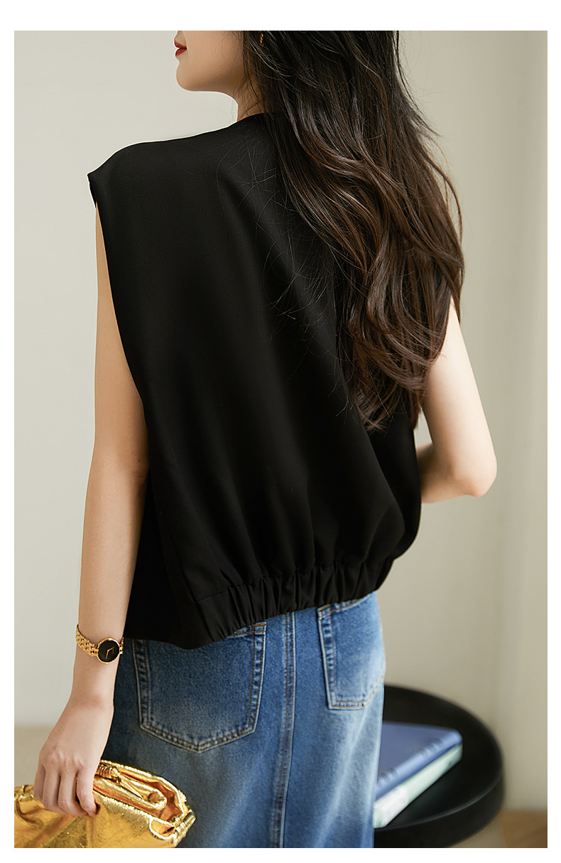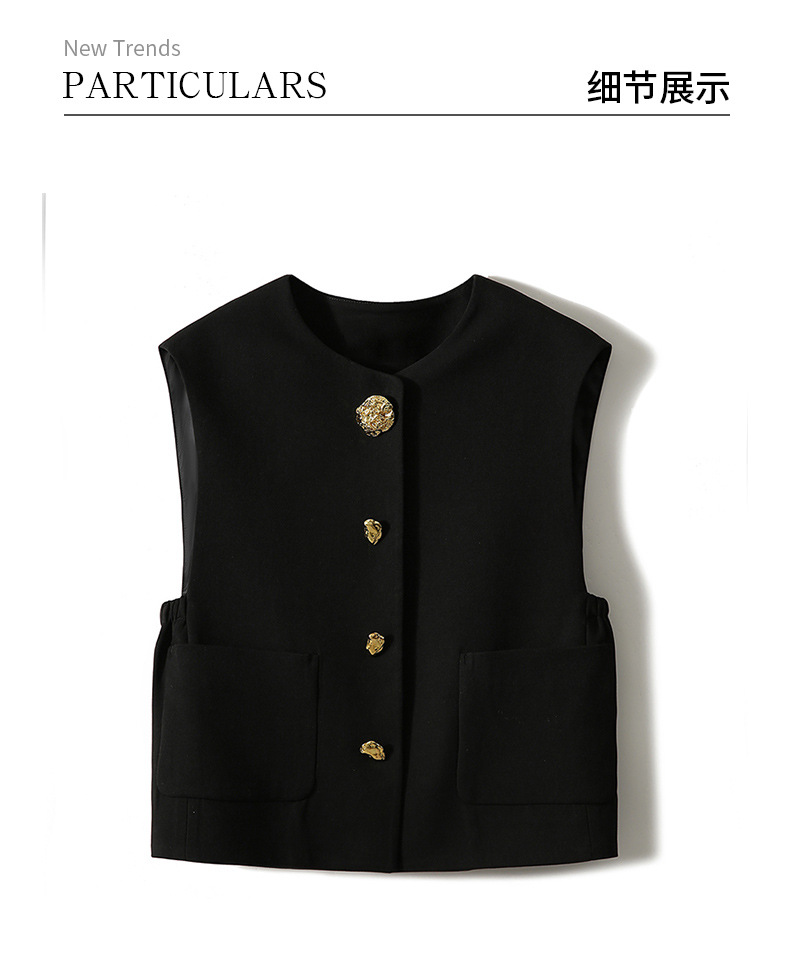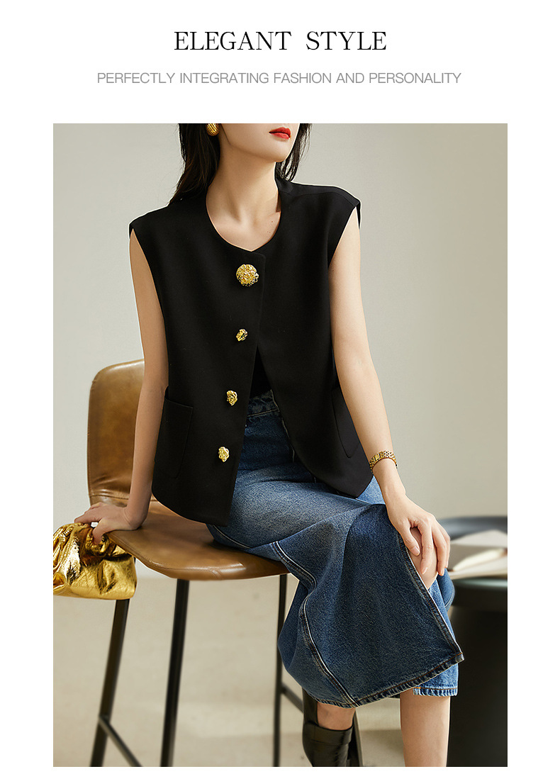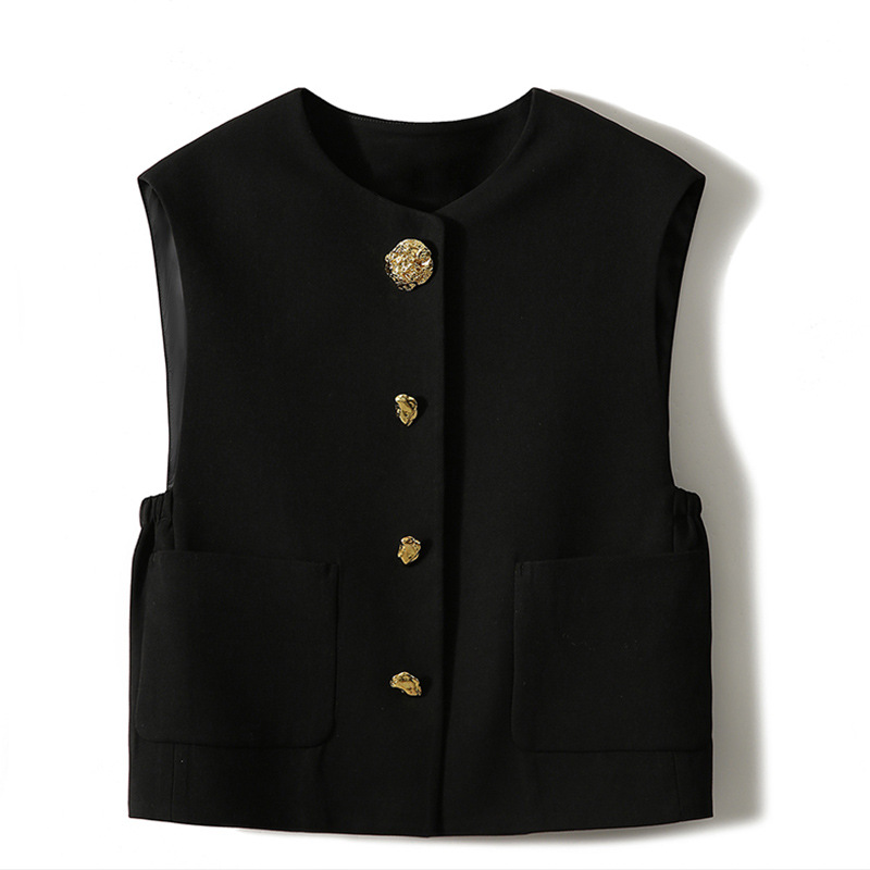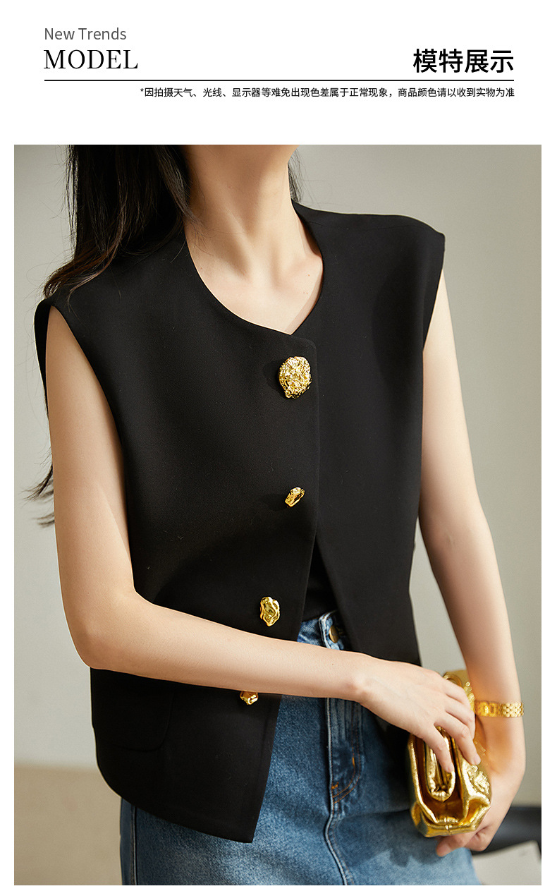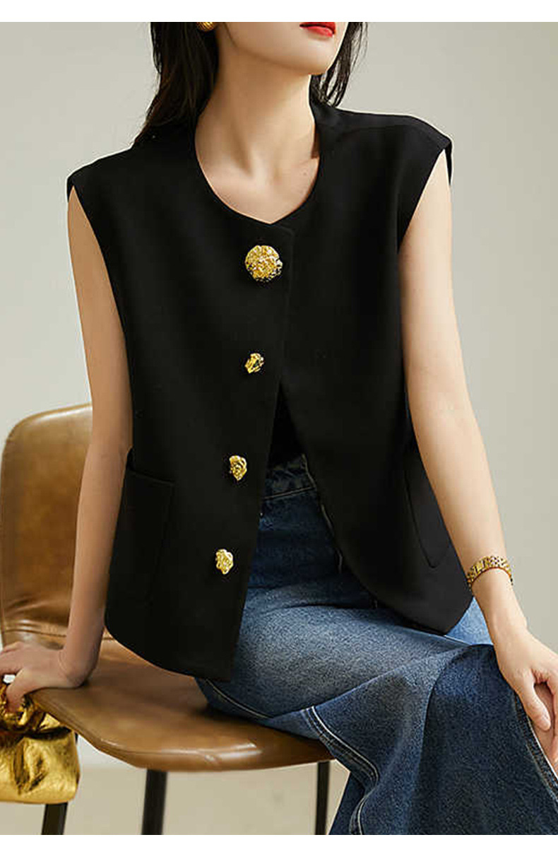 디자인감 있는 숨은 단추 라운드넥 민소매 조끼 여성용 초봄 신상 2025년 독특한 메탈 버튼 다용도 상의스토어 가기