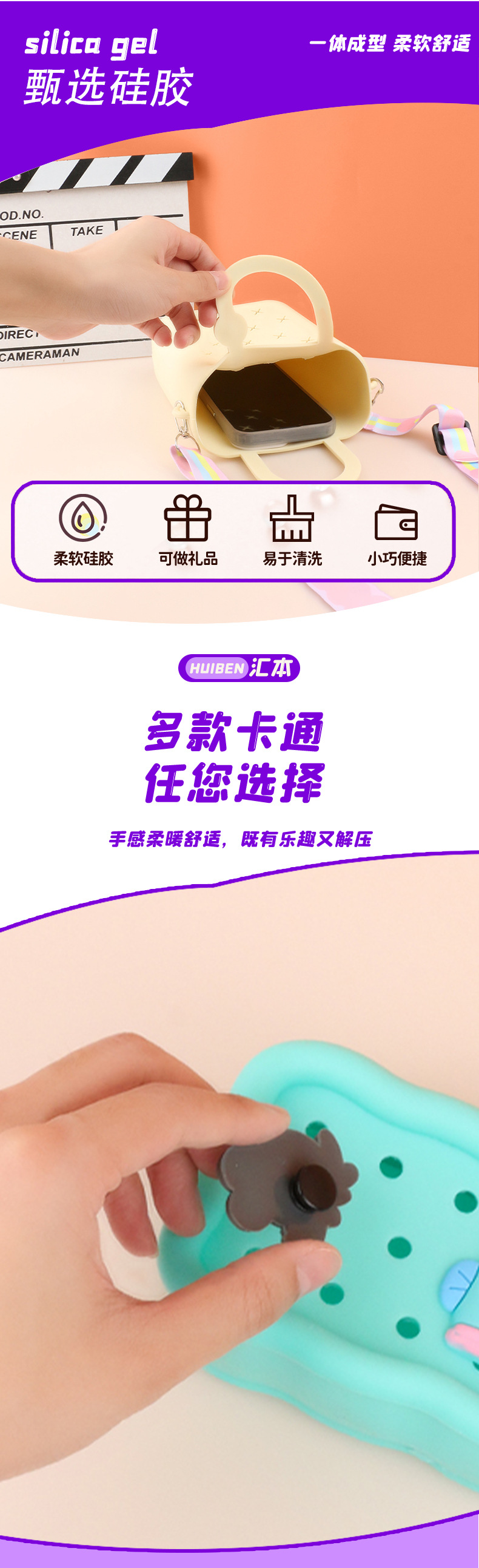 DIY 만화 실리콘 가방 구멍 가방 비치 휴가 핸드백 야채 크로스 바디 버클 화장품 가방 저장 가방