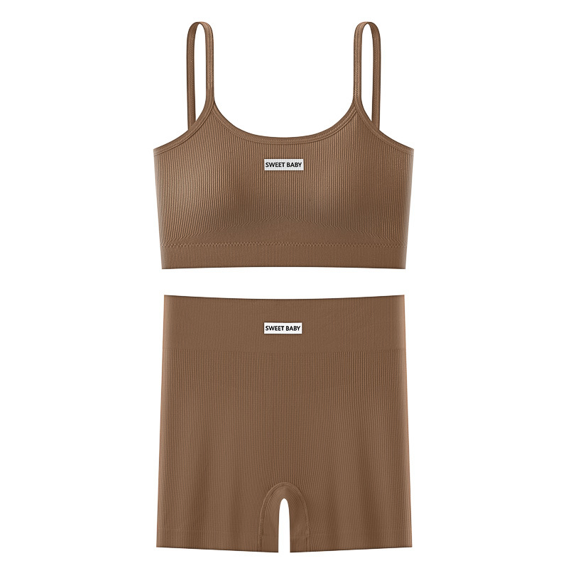 국경 간 원활한 스레드 뷰티 백 여성 스포츠 속옷 세트 편안한 푸시 업 브라 허리 엉덩이 리프팅 복서 팬티