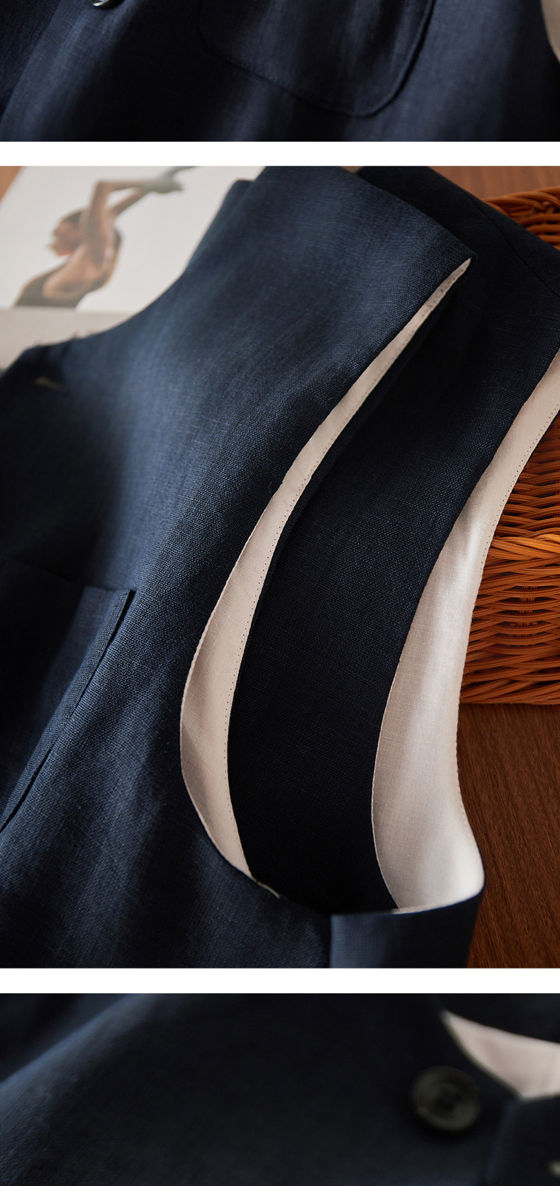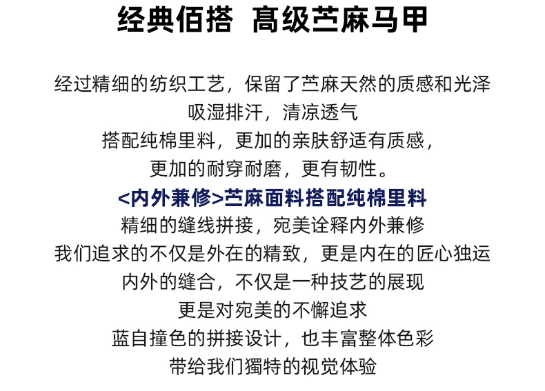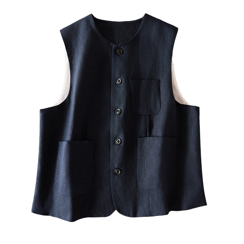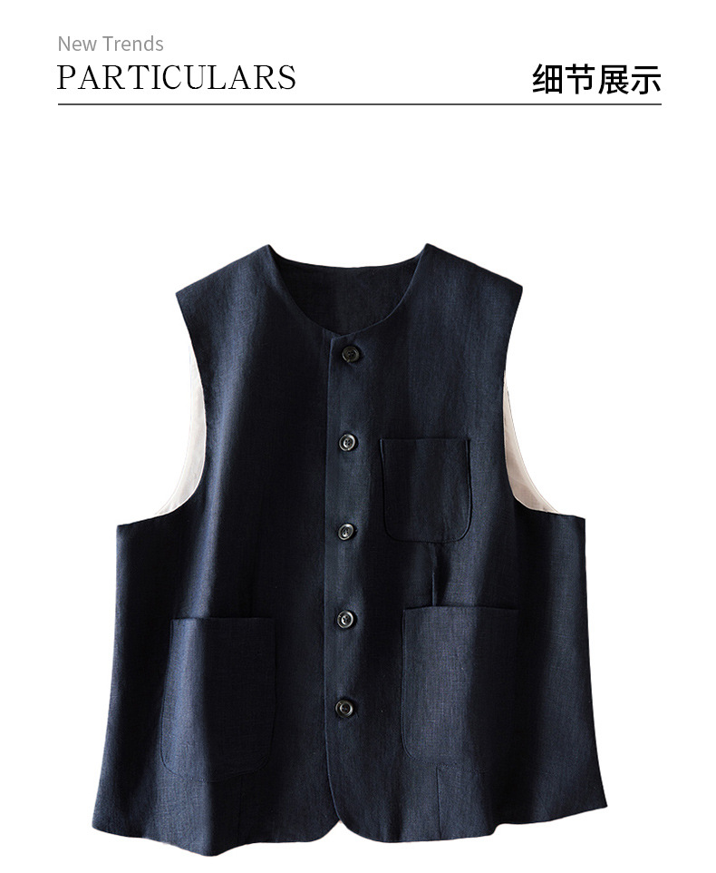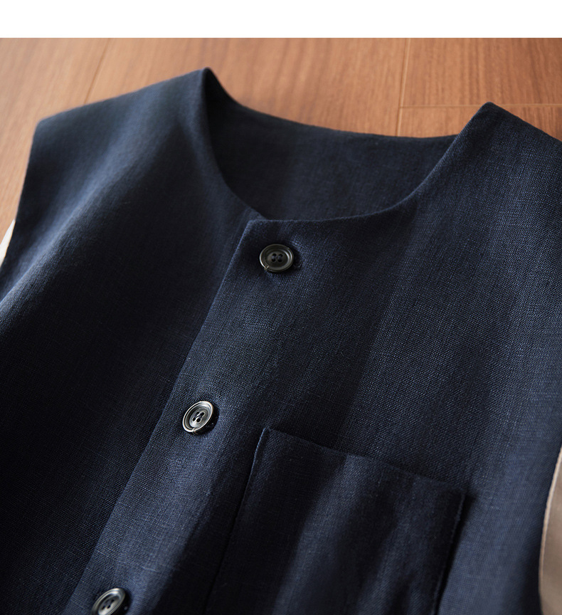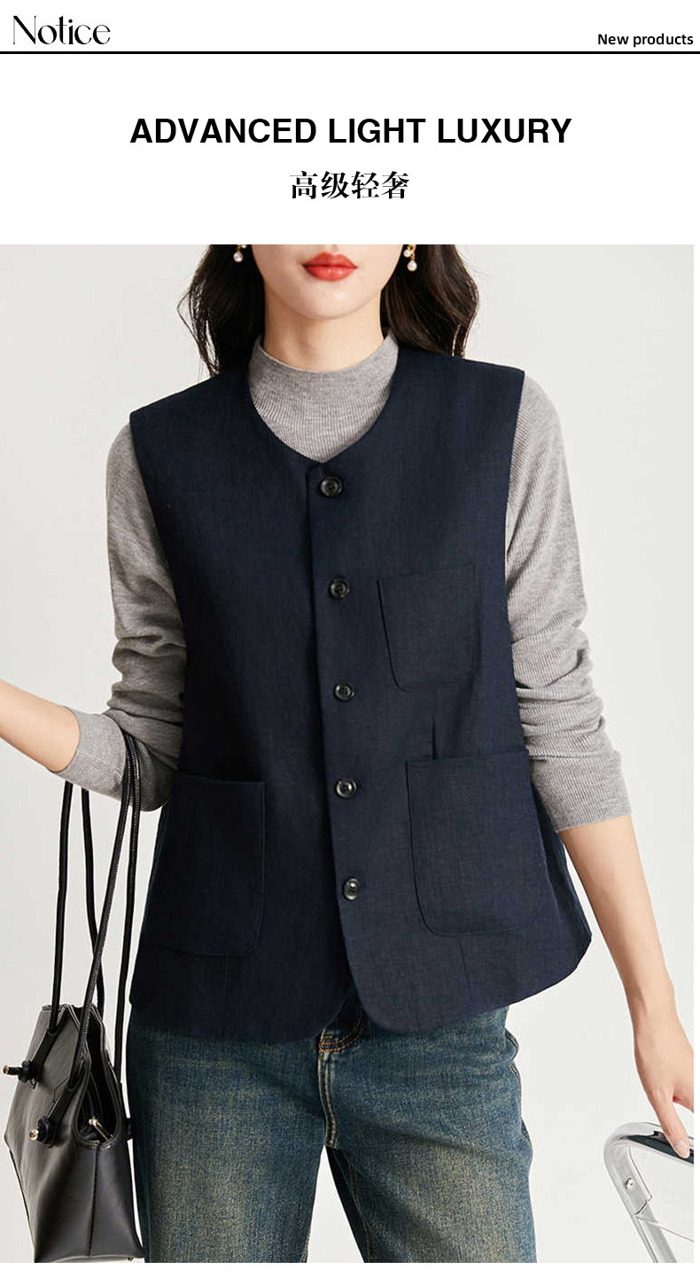 여성을위한 레트로 하이 엔드 모시 라운드 넥 민소매 조끼 재킷 가을 2025 새로운 기질 연령 감소 다목적 조끼