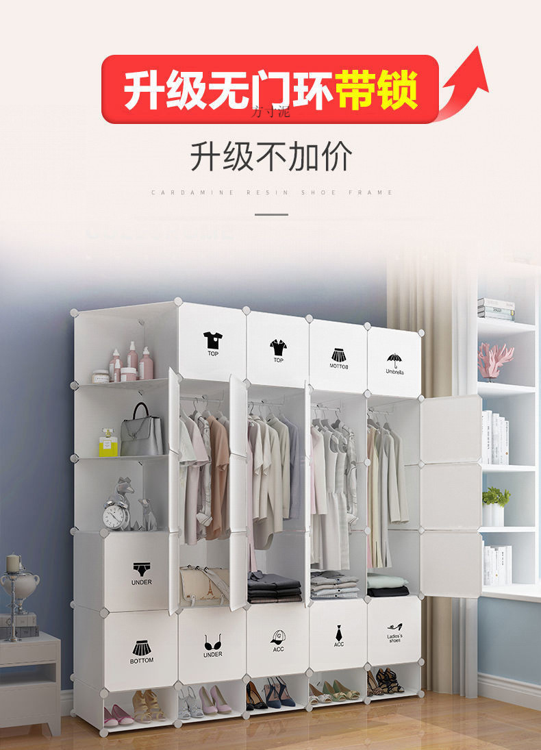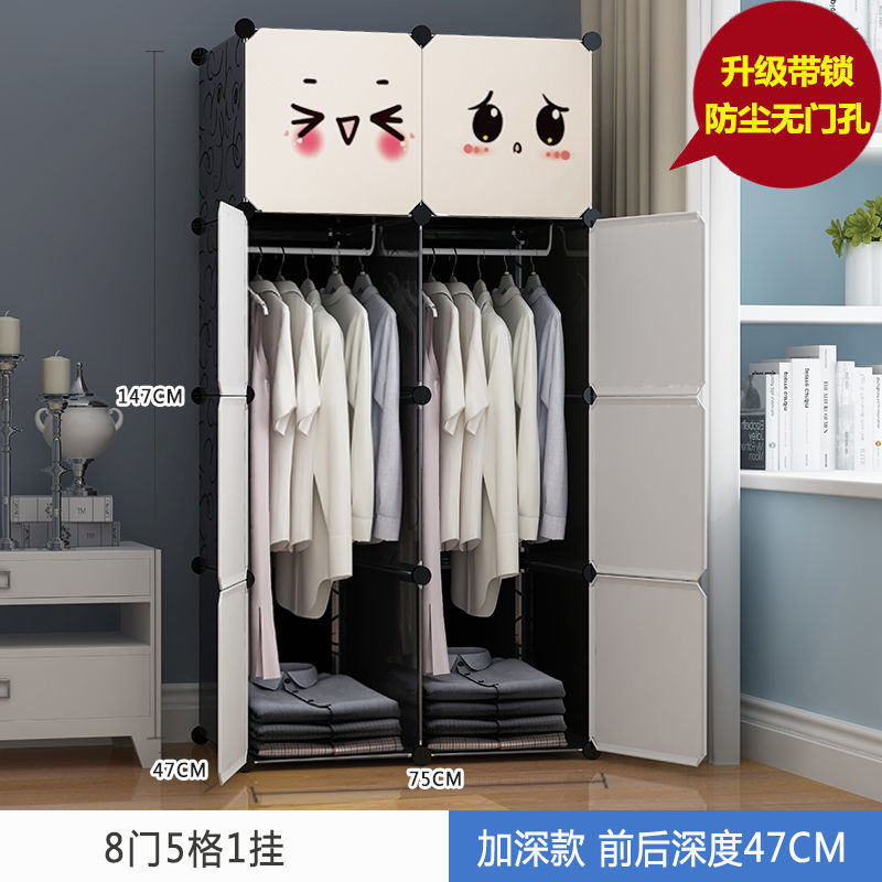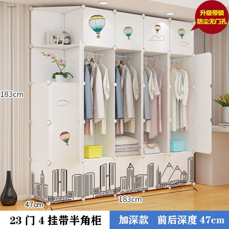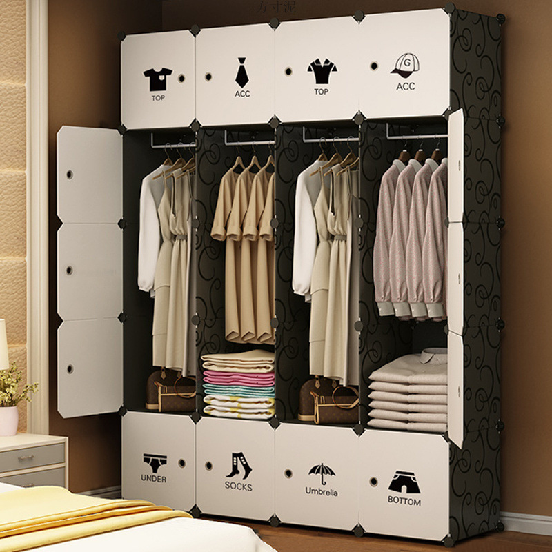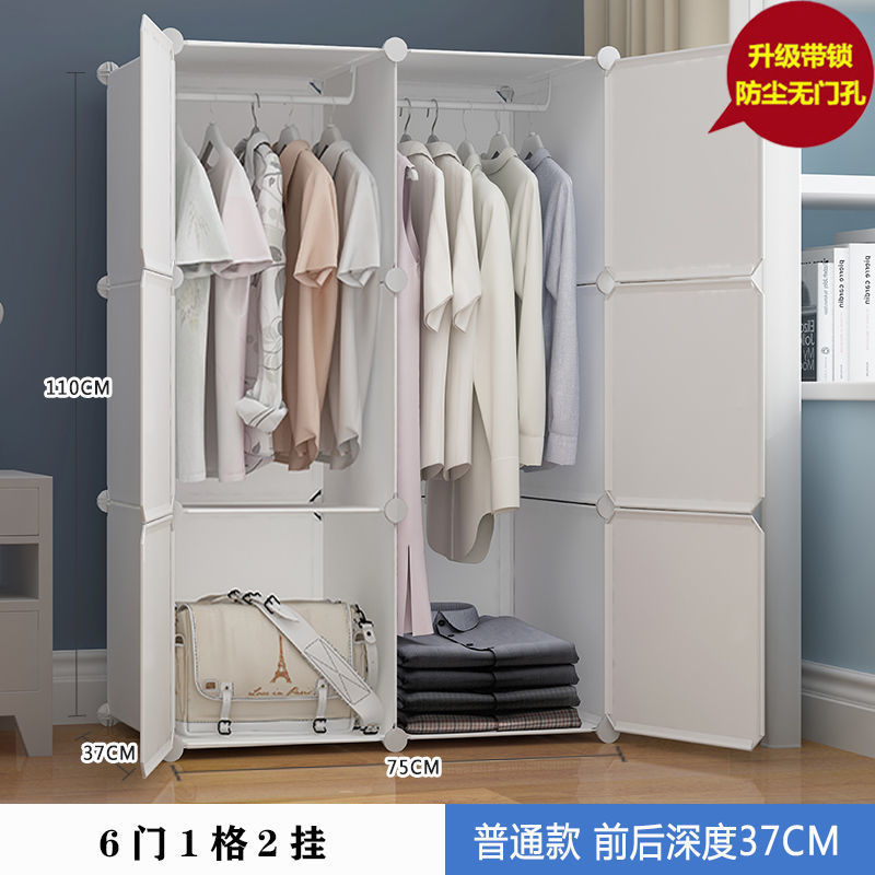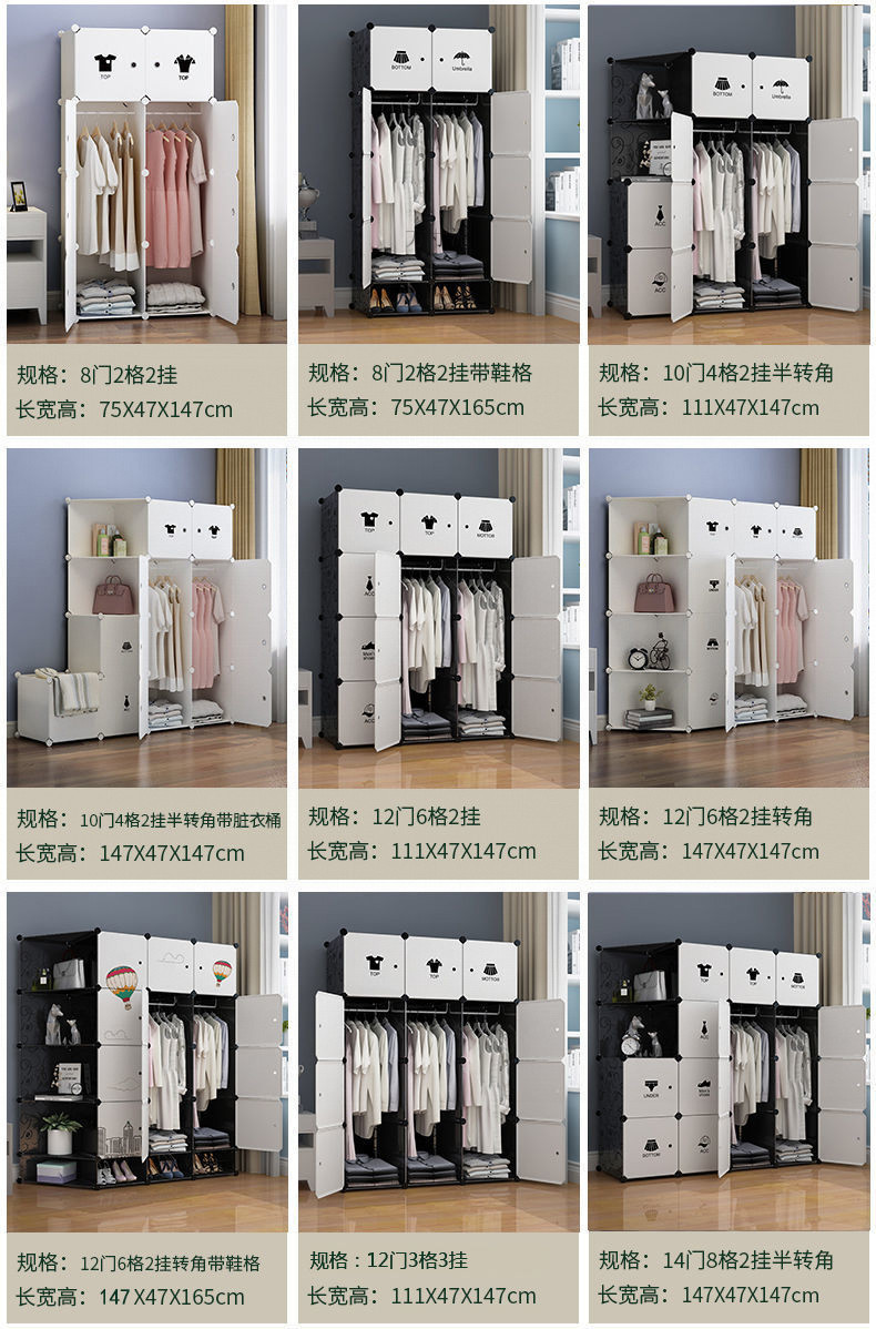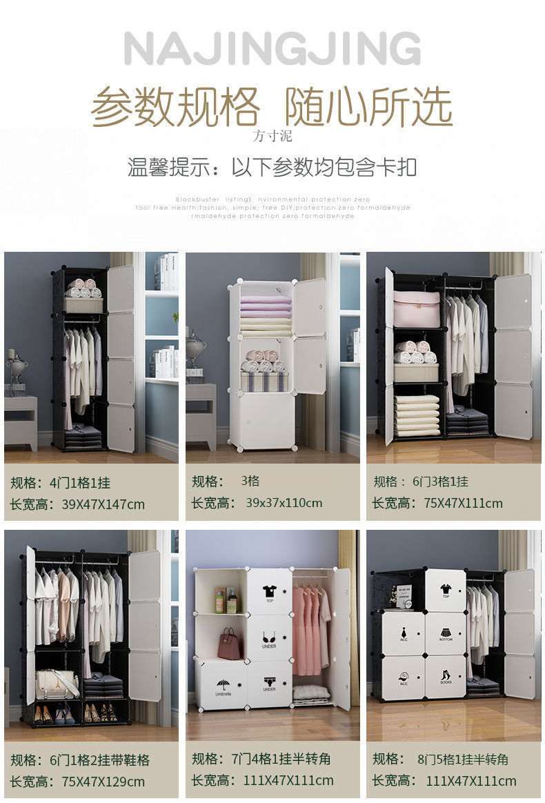 간단한 옷장 가정용 침실 가구 어셈블리 성인의 슬라이딩 도어 저장 캐비닛 플라스틱 교수형 옷 다기능 캐비닛