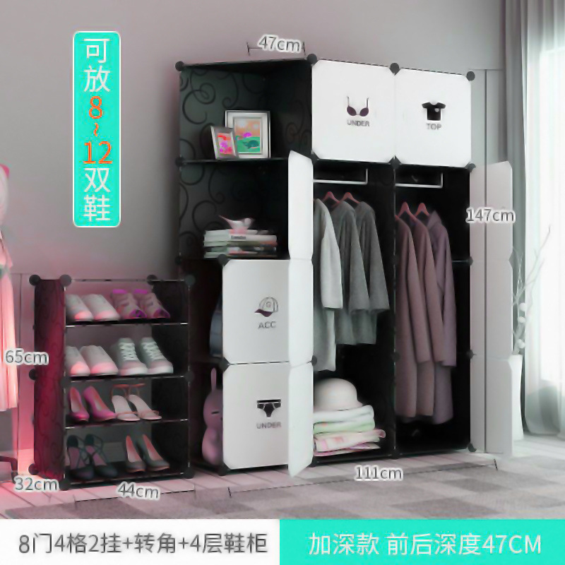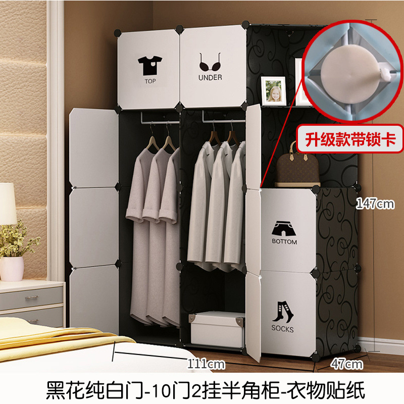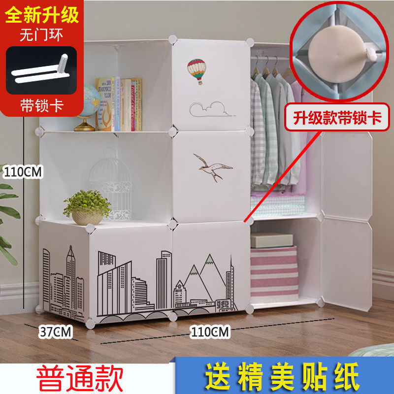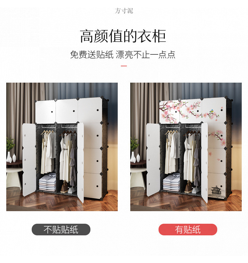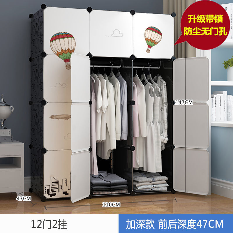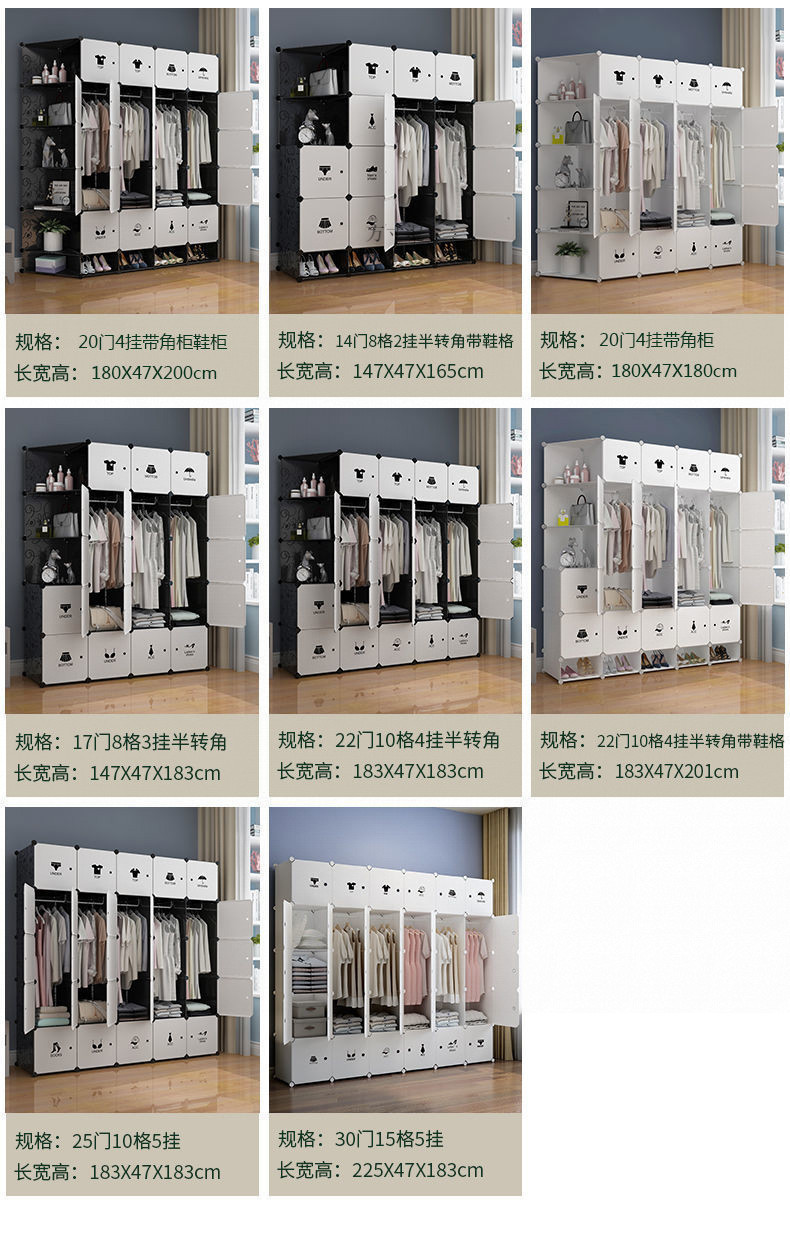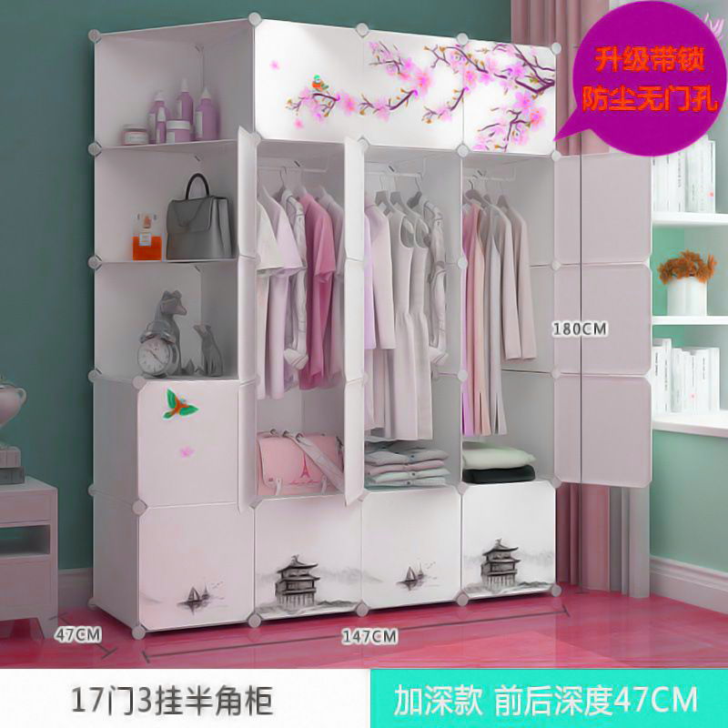 간단한 옷장 가정용 침실 가구 어셈블리 성인의 슬라이딩 도어 저장 캐비닛 플라스틱 교수형 옷 다기능 캐비닛