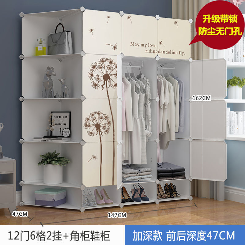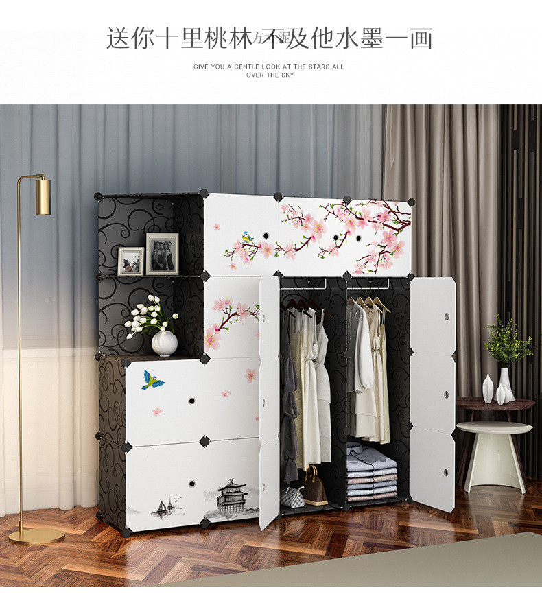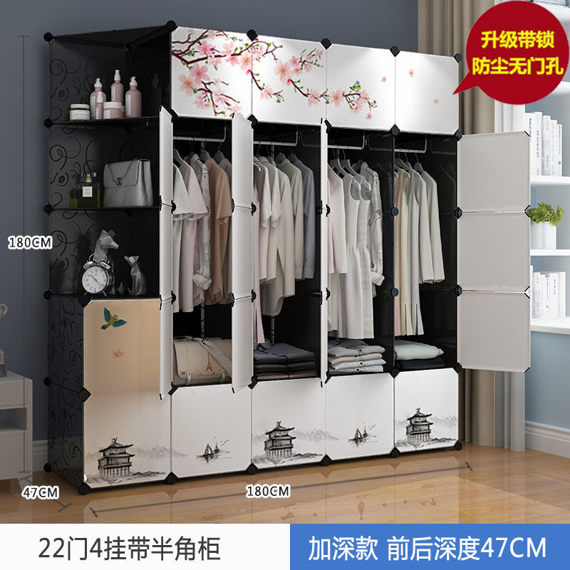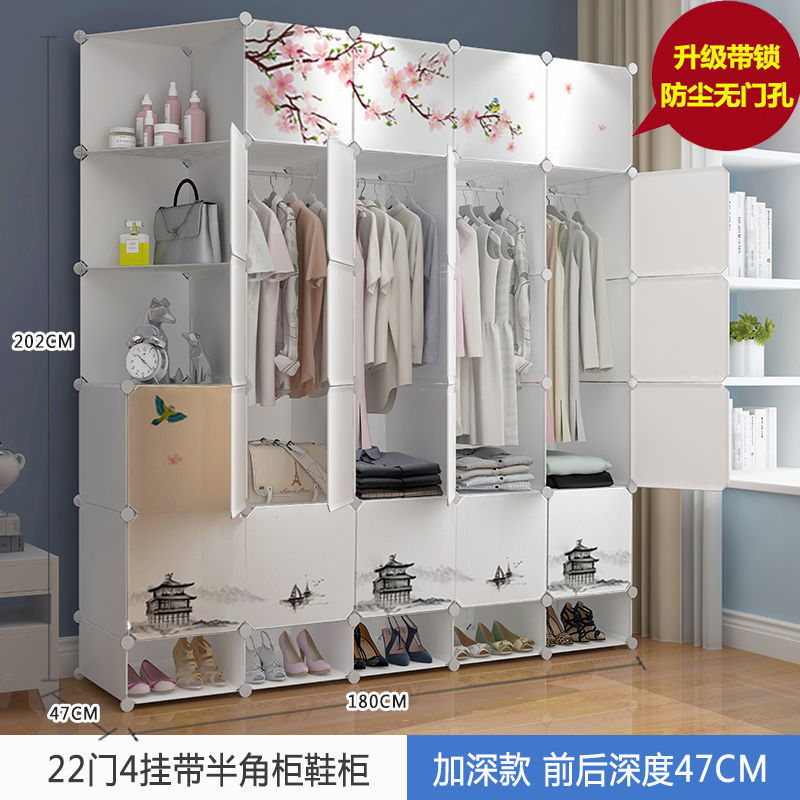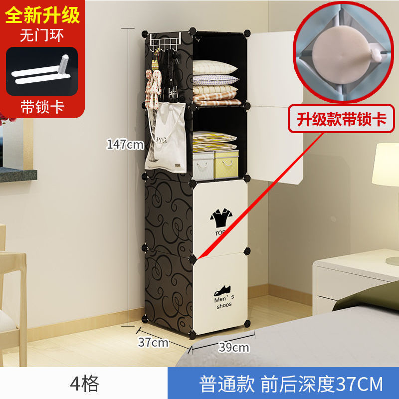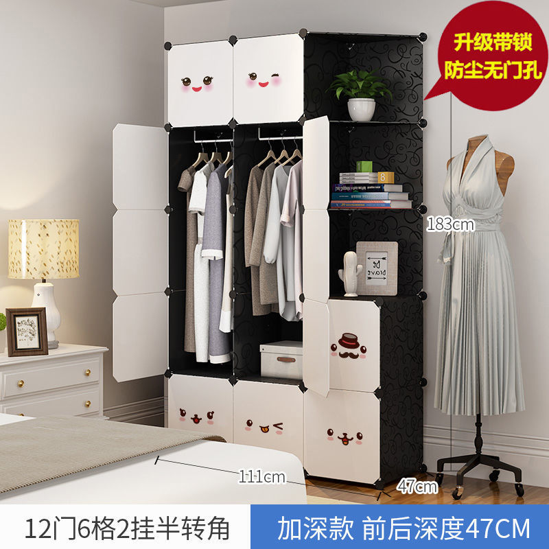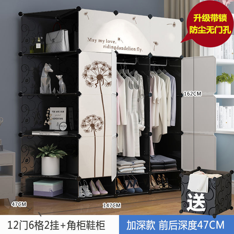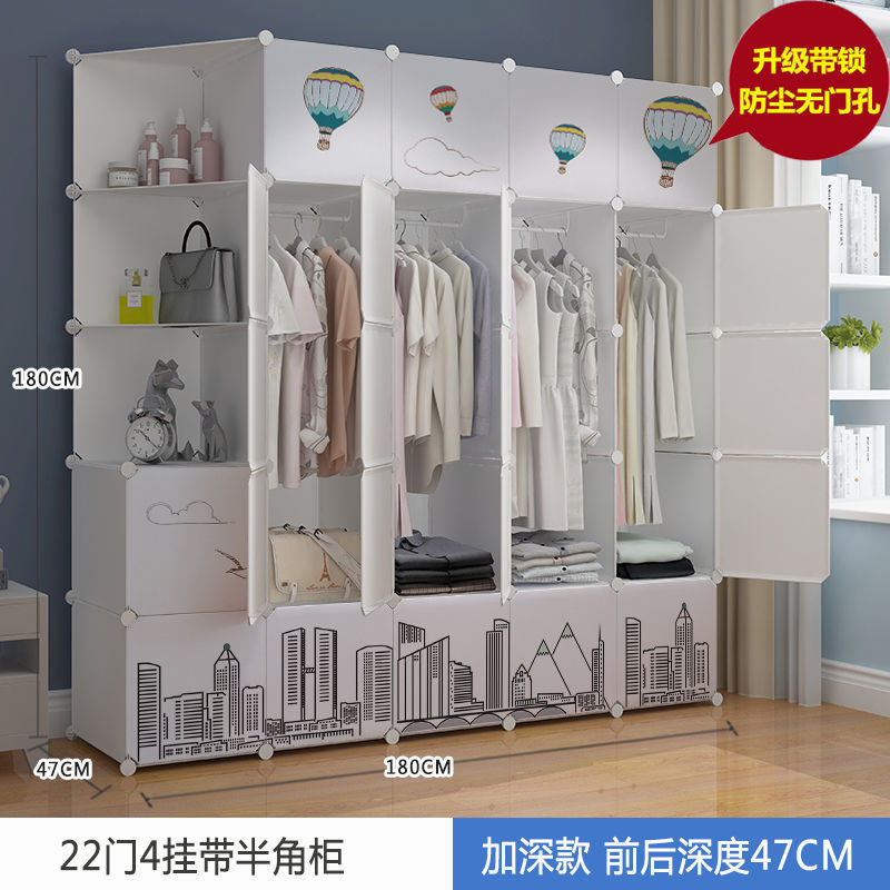 간단한 옷장 가정용 침실 가구 어셈블리 성인의 슬라이딩 도어 저장 캐비닛 플라스틱 교수형 옷 다기능 캐비닛