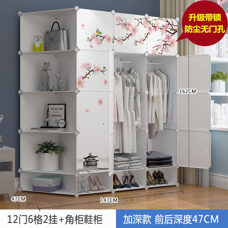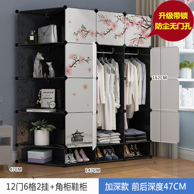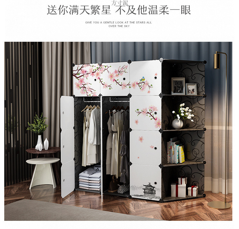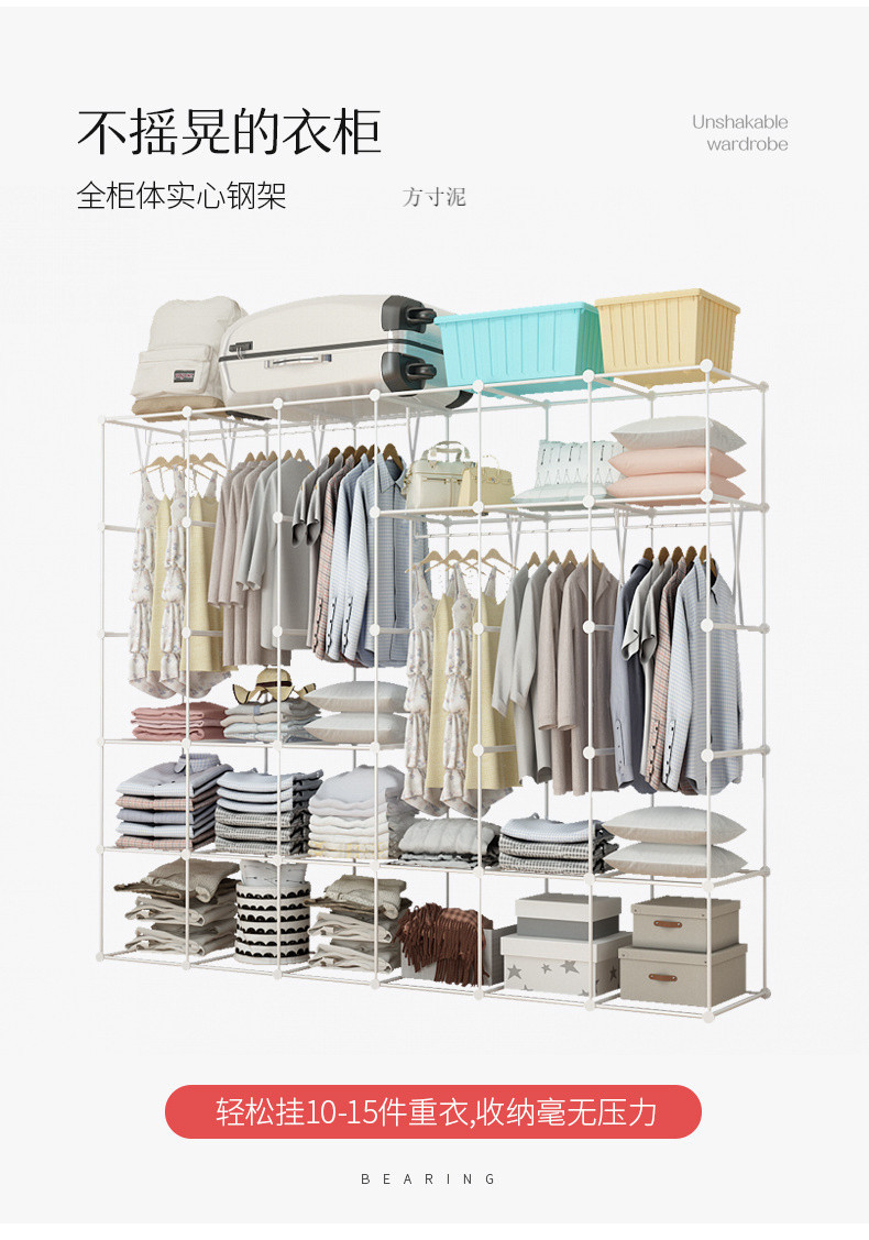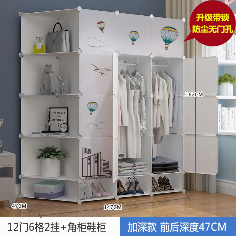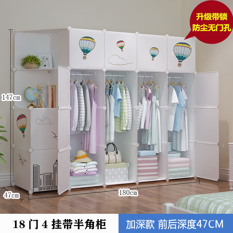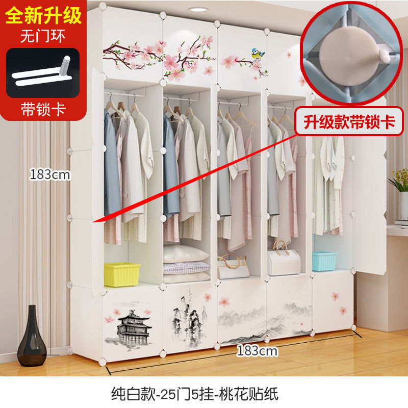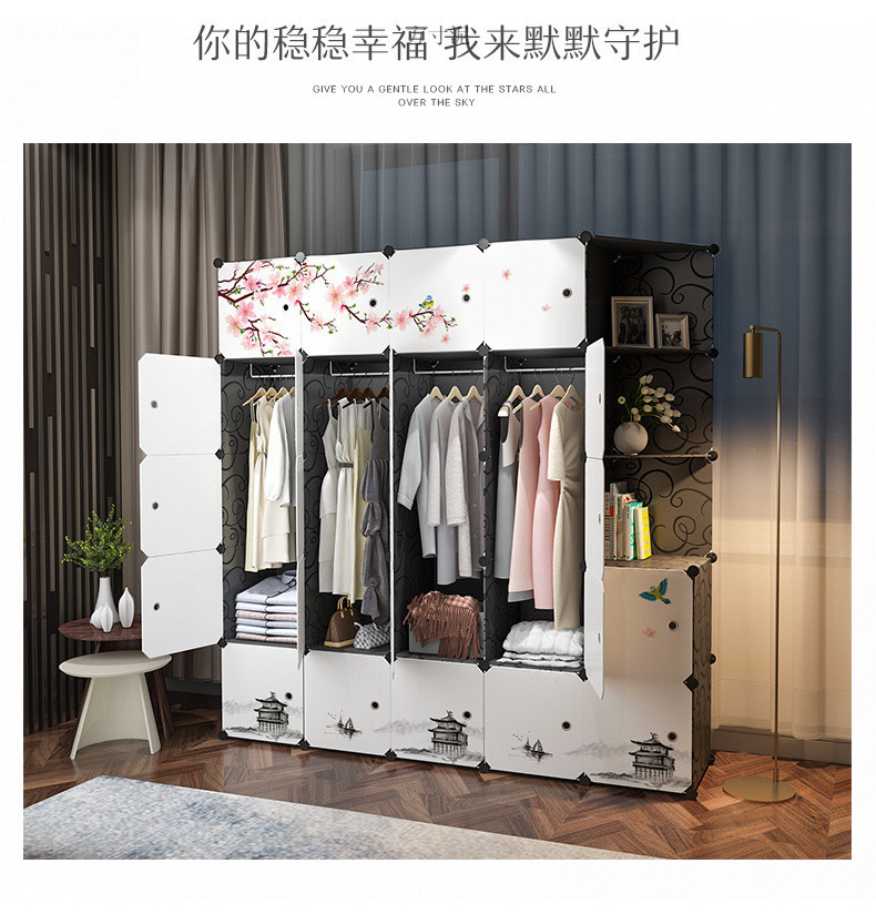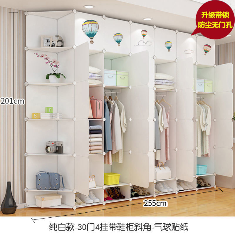 간단한 옷장 가정용 침실 가구 어셈블리 성인의 슬라이딩 도어 저장 캐비닛 플라스틱 교수형 옷 다기능 캐비닛스토어 가기