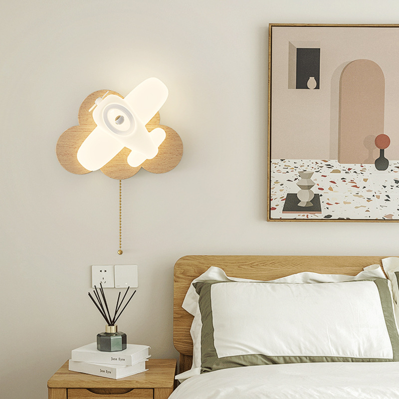 장식 그림 만화 어린이 방 침실 비행기 벽면 램프 로그 스타일 고급 장식 벽 램프스토어 가기