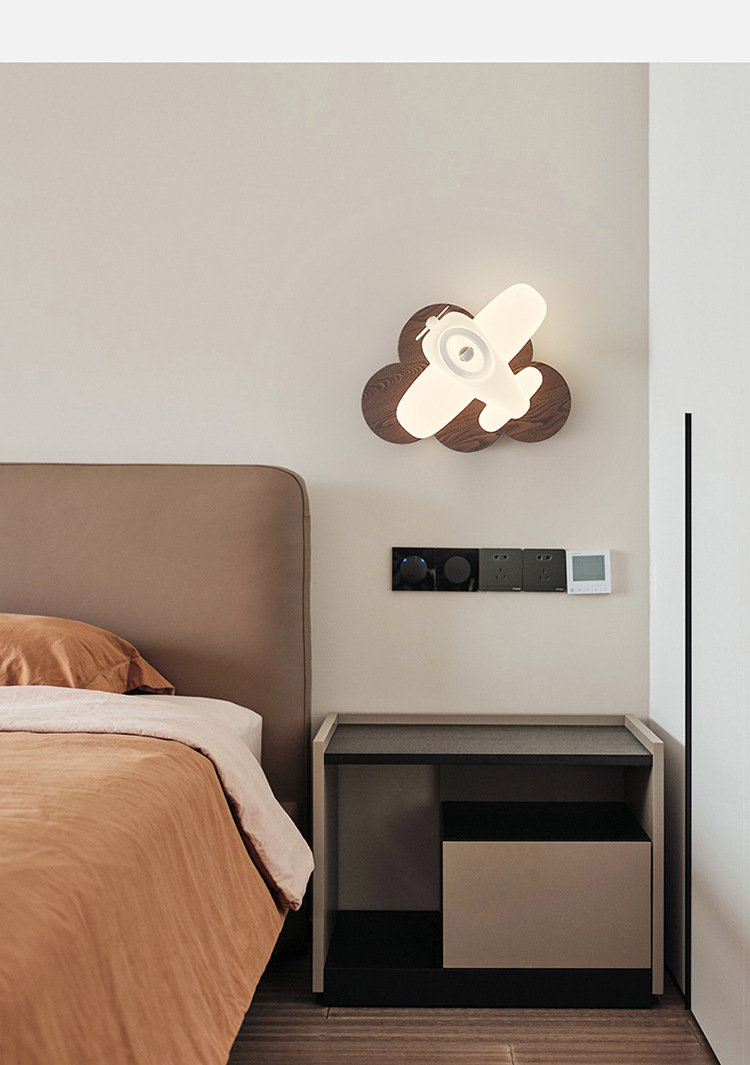 장식 그림 만화 어린이 방 침실 비행기 벽면 램프 로그 스타일 고급 장식 벽 램프