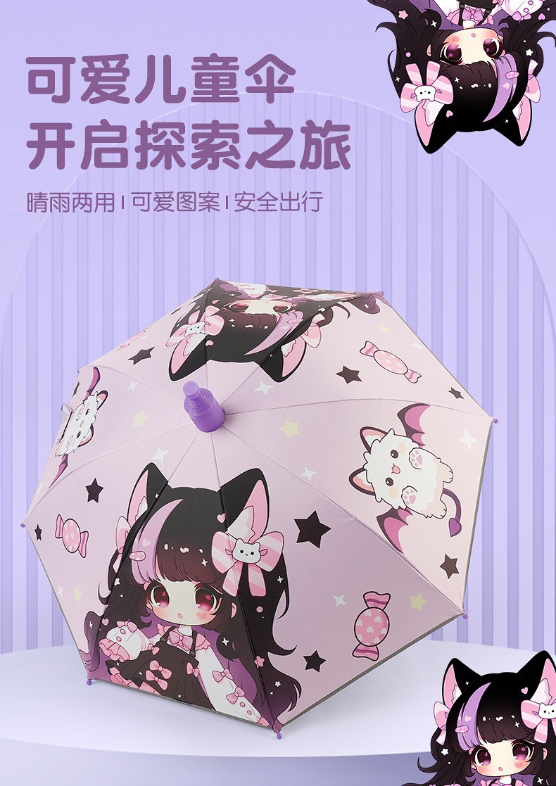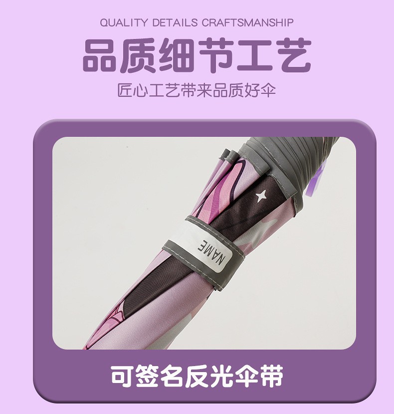 소년 소녀를위한 새로운 어린이 우산 안전 반사 스트립 귀여운 만화 반자동 우산 이름 스티커가있는 학생 우산