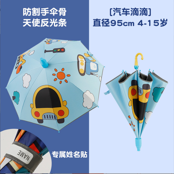 소년 소녀를위한 새로운 어린이 우산 안전 반사 스트립 귀여운 만화 반자동 우산 이름 스티커가있는 학생 우산스토어 가기