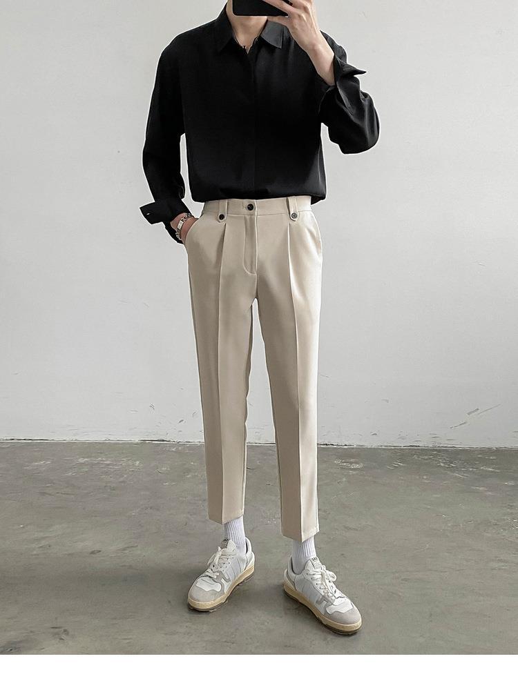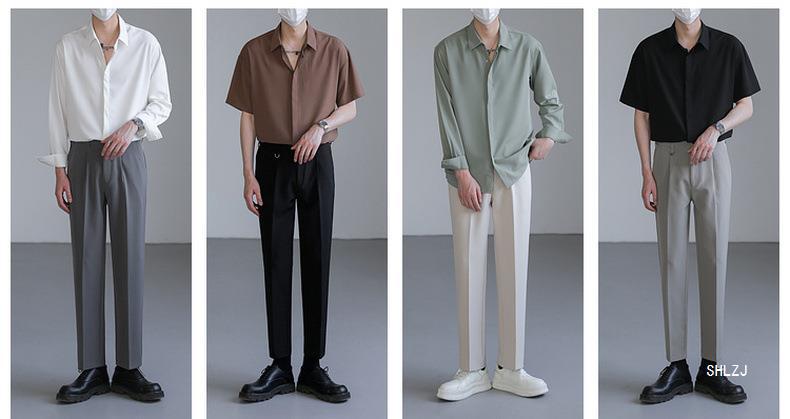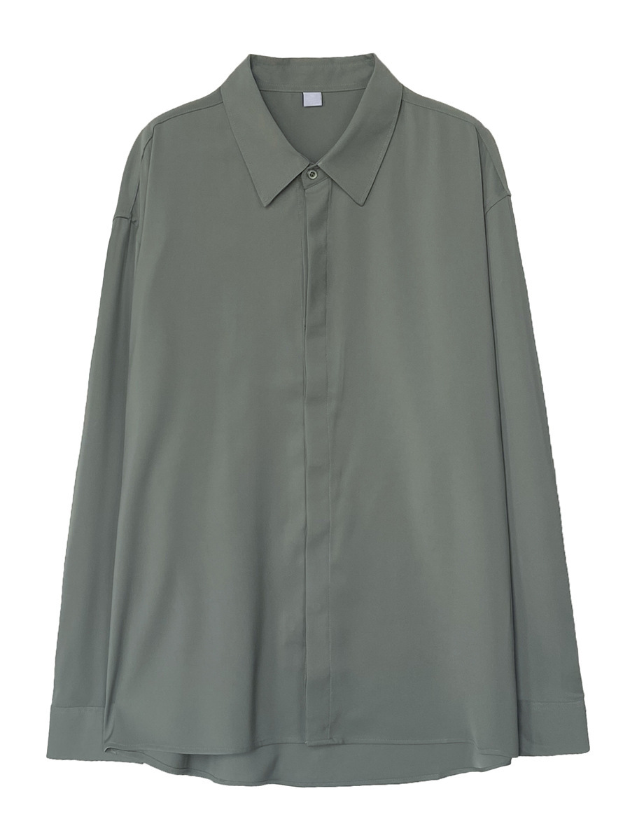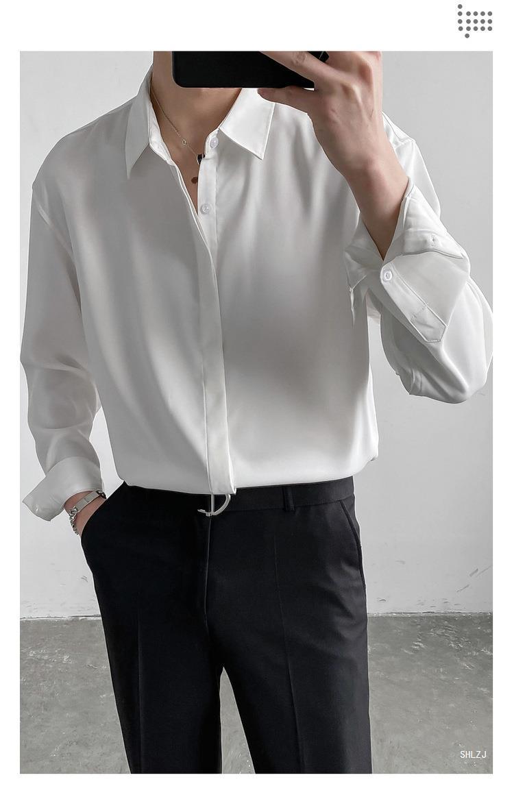 봄, 가을 남성용 가볍고 성숙한 한국식 루즈한 긴팔 셔츠, 새로운 상의, 트렌디하고 패셔너블한 드레이프 솔리드 컬러 노아이론 셔츠
