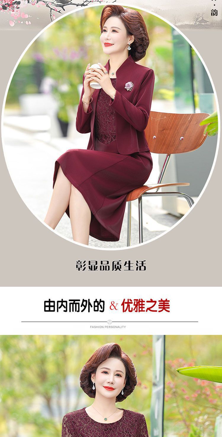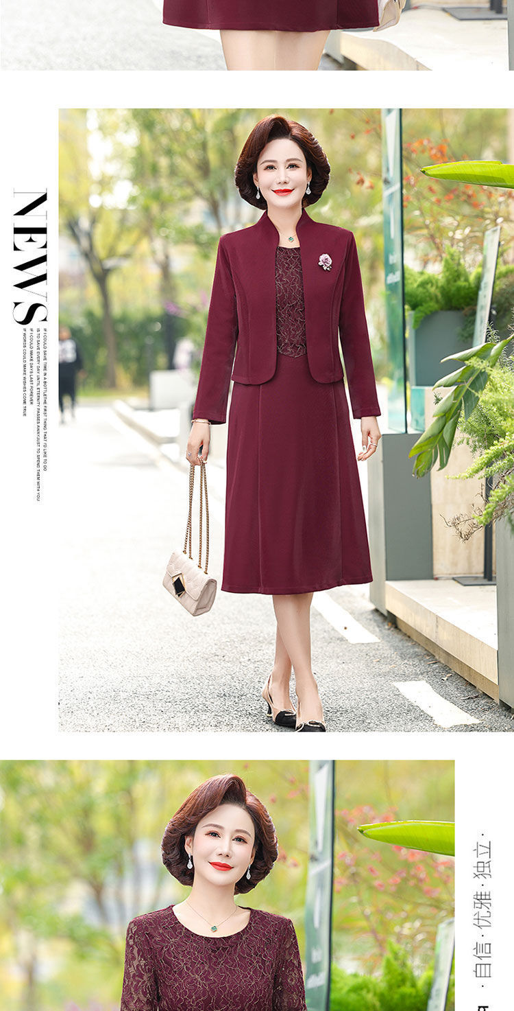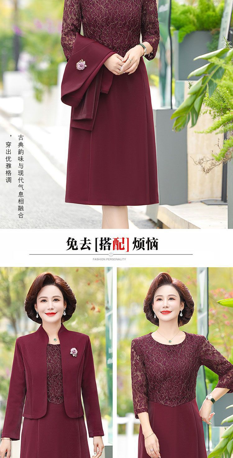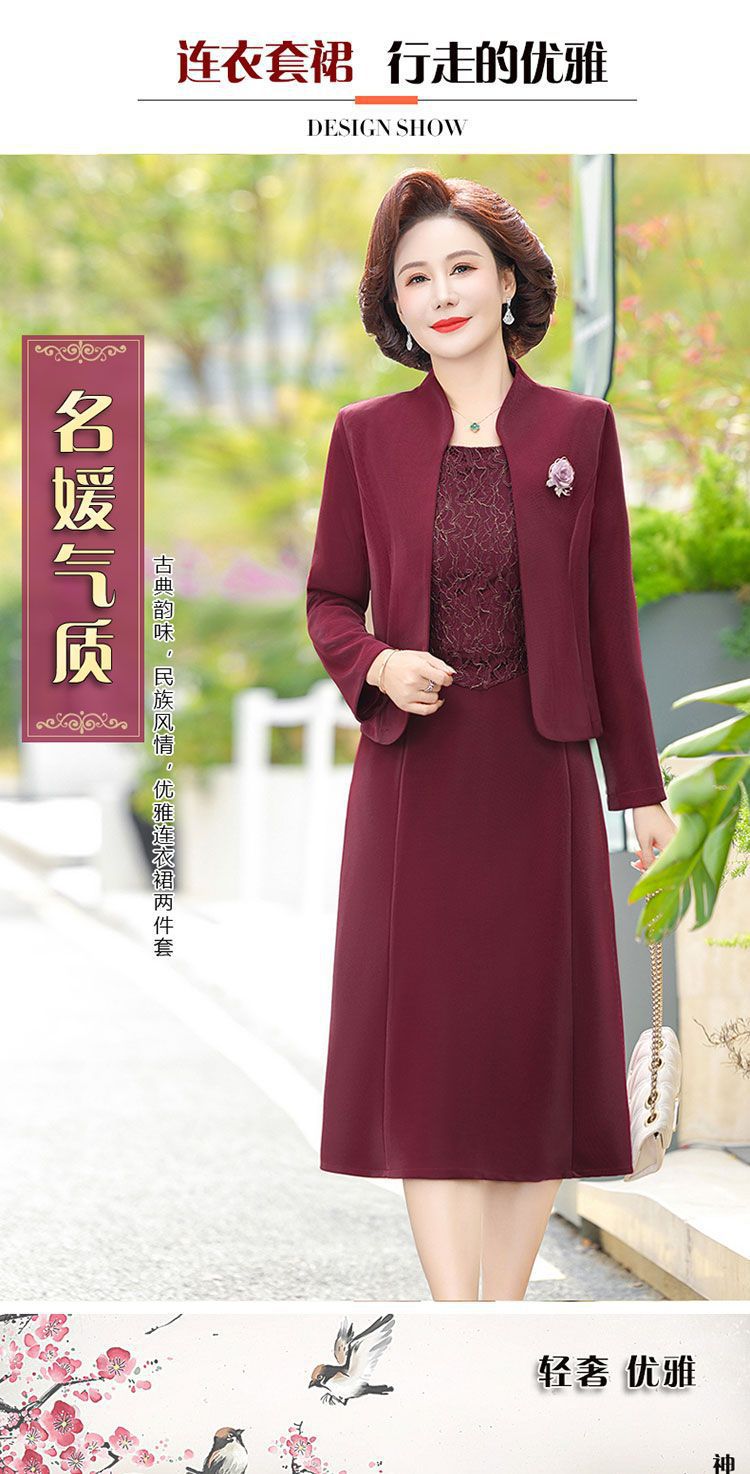 엄마 가을 패션 원피스 세트 중년 여성의 봄과 가을 웨딩 원피스 원피스 여성의 투피스 세트