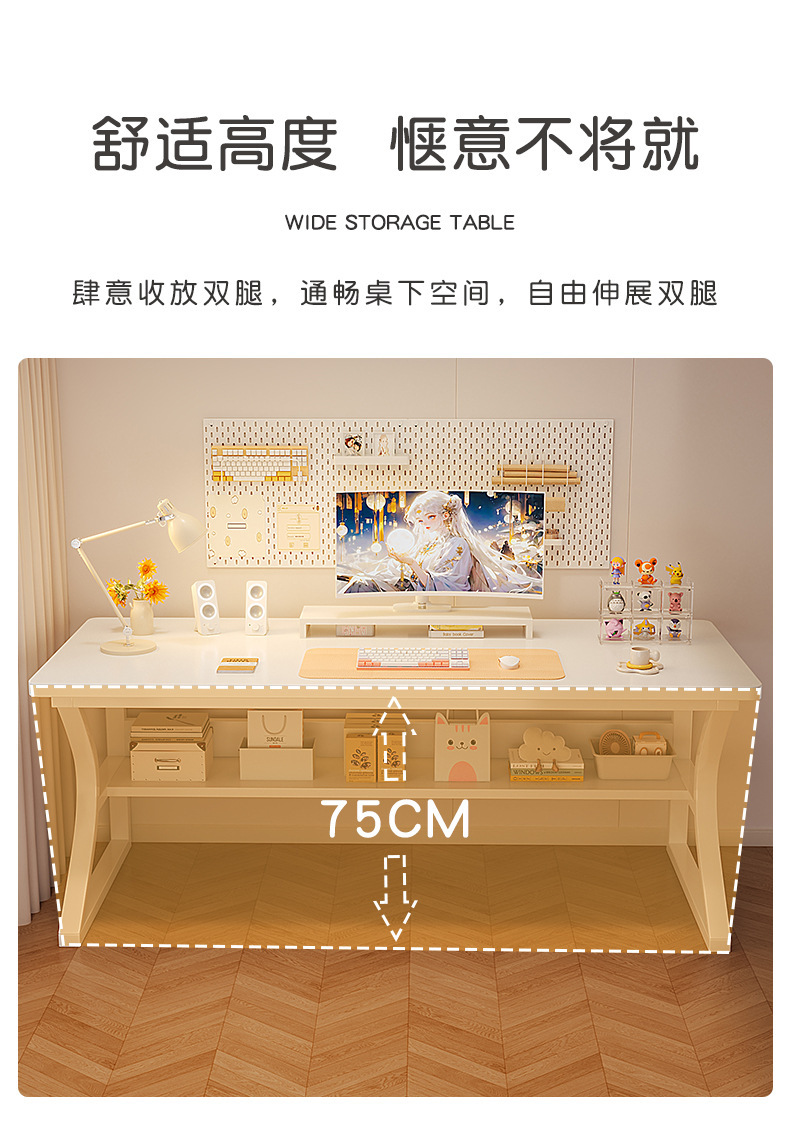 • [선반이 있는 C자형 다리] 웜화이트 100x60CM