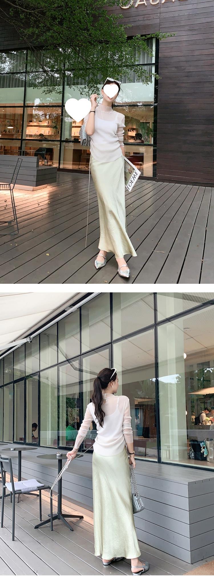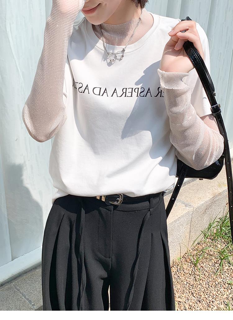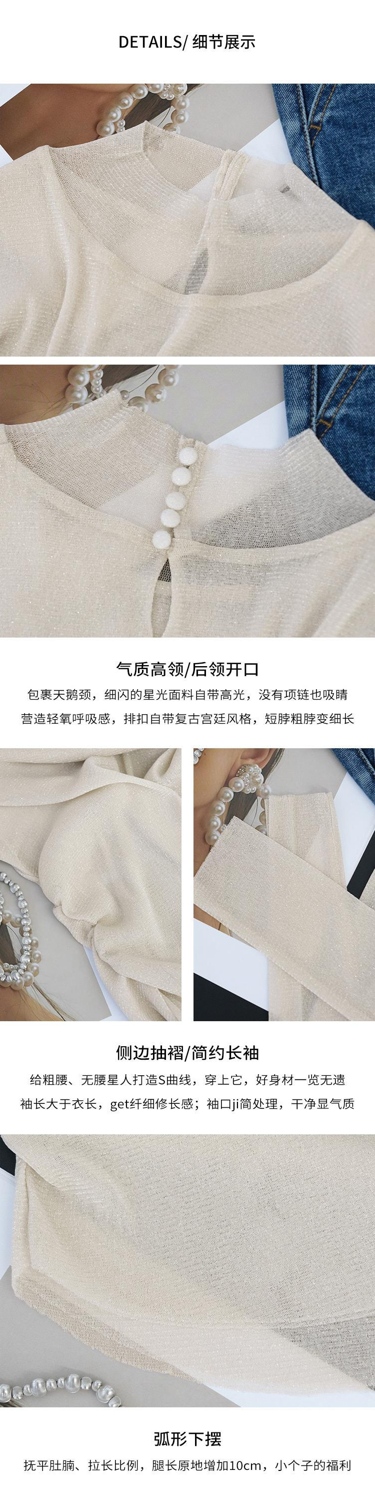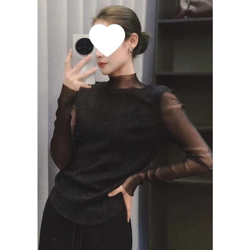 MEIYANG 별이 빛나는 하늘의 아름다운 셔츠~ 슬림핏 플리츠 밝은 실크 메쉬 가볍고 얇은 긴팔 탑