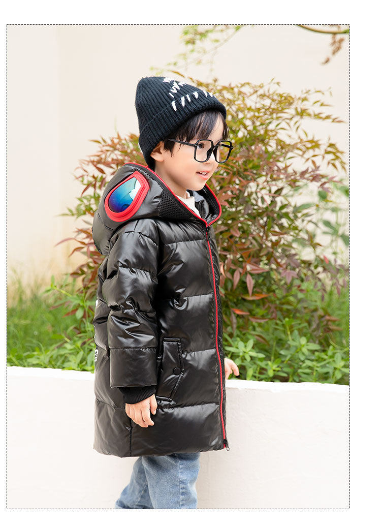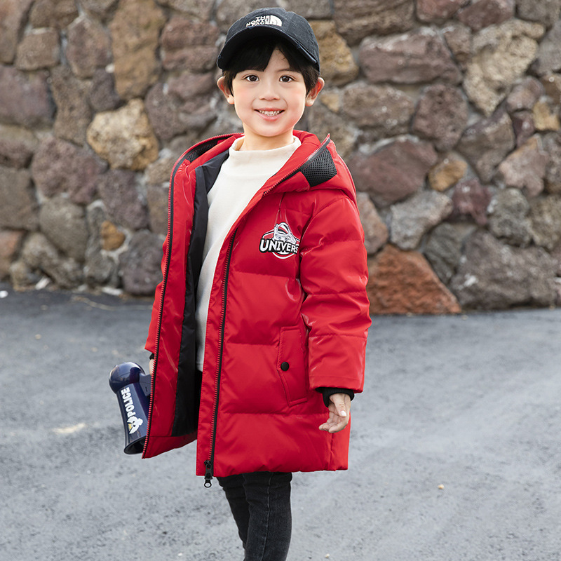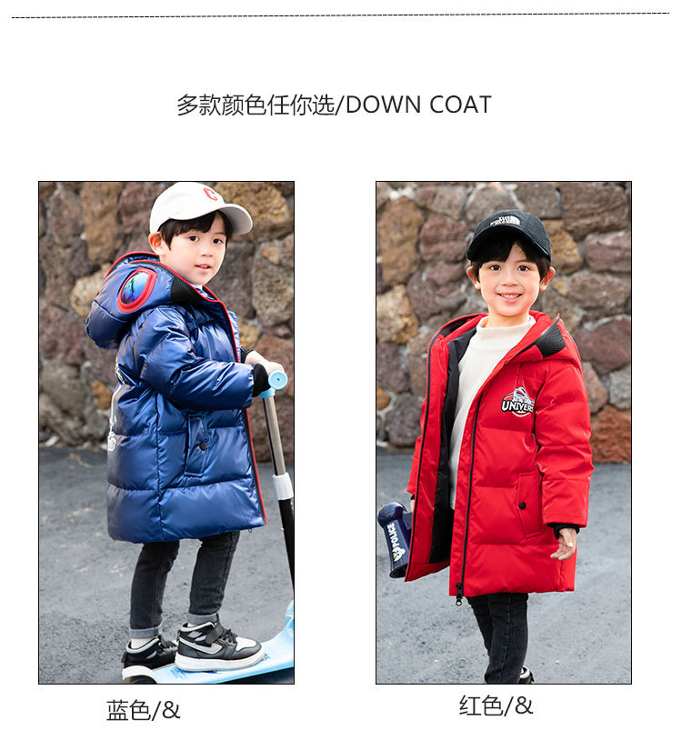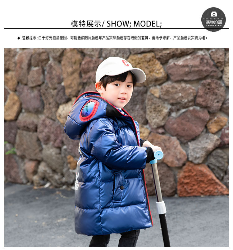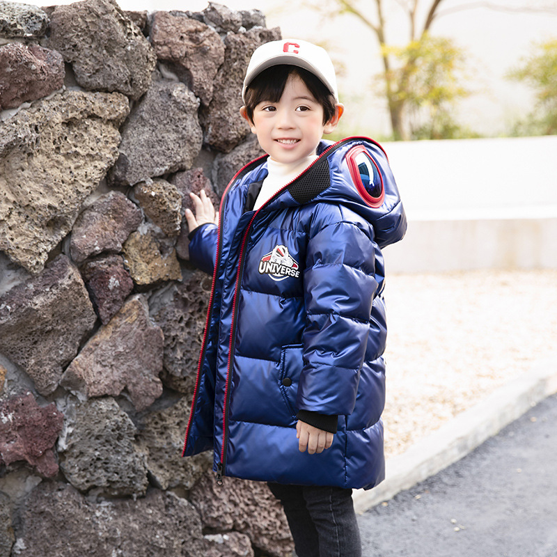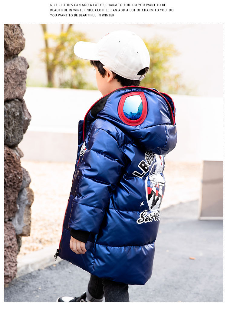 남아용 다운 실크 재킷 중간 길이 2024 새로운 스타일의 어린이 및 중년 어린이 스타일 만화 두꺼운 노워시 겨울 재킷